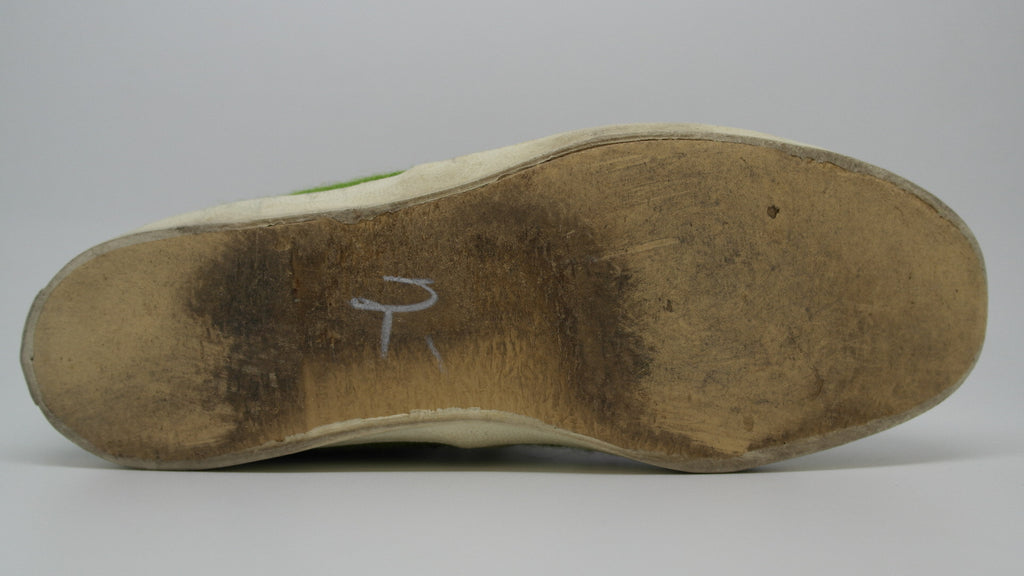 good used condition with plenty life remaining. the outsole does show considerable wear but the uppers remain superb. some separation between uppers & rubber at toe creases. vinyl heel pads were removed. rubber remains soft & flexible. wear at own risk!