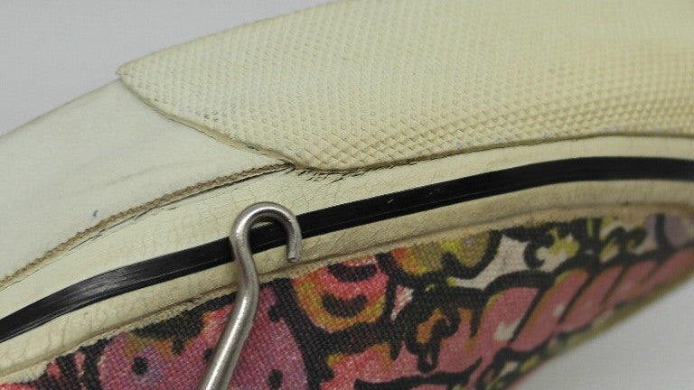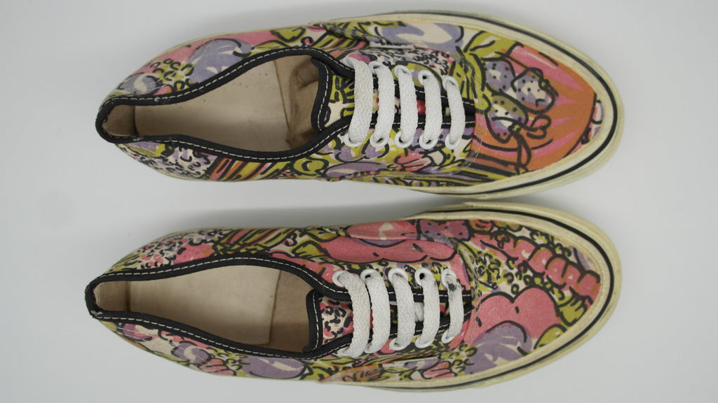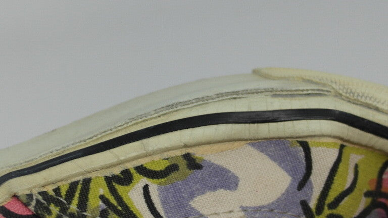 ex display pair, the left shoe especially shows extensive rubber flaking & some dryness. the rubber has not cured/solidified & remains flexible however this will lead to premature aging. extensive wrinkling upon bend & minor stress cracks. wear at own risk!