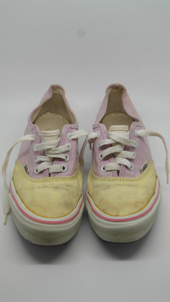 general wear with some staining. possibility they were machine washed which can dry the rubber somewhat. minor separation between rubber & uppers at toe creases. size is no longer visible. please see measurements & wear at own risk!