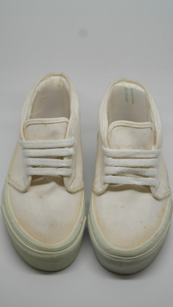 like new condition with widespread age spotting. rubber remains soft & flexible. both footbeds have been torn back to the arch only however will not effect wear. priced accordingly. wear at own risk