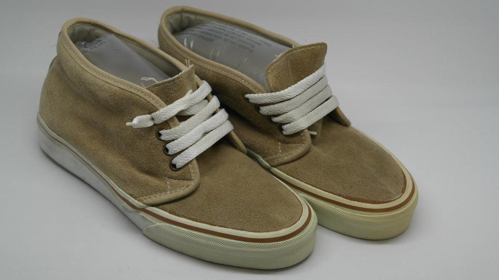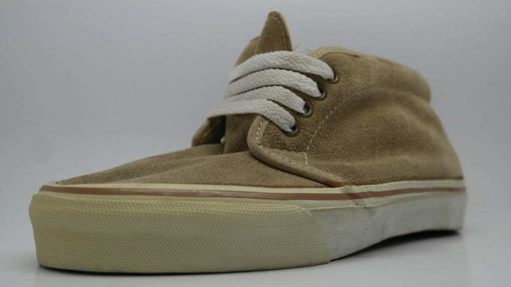the left shoe saw use as a display item with resulting discolouration to the lateral toe area. the overglue has crusted & there is minor dryness & hardening to the foxing stripe & 1st foxing area. the right shoe is near mint with only minor wrinkling upon bending which may lead to premature aging. wear at own risk!