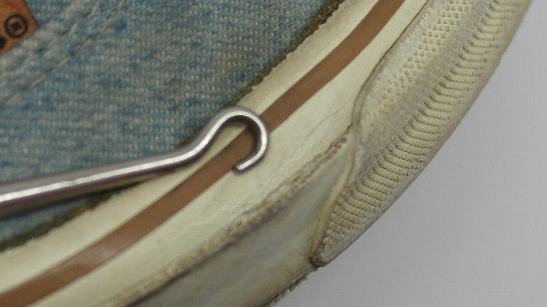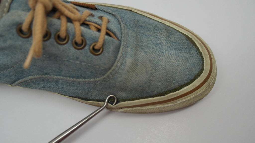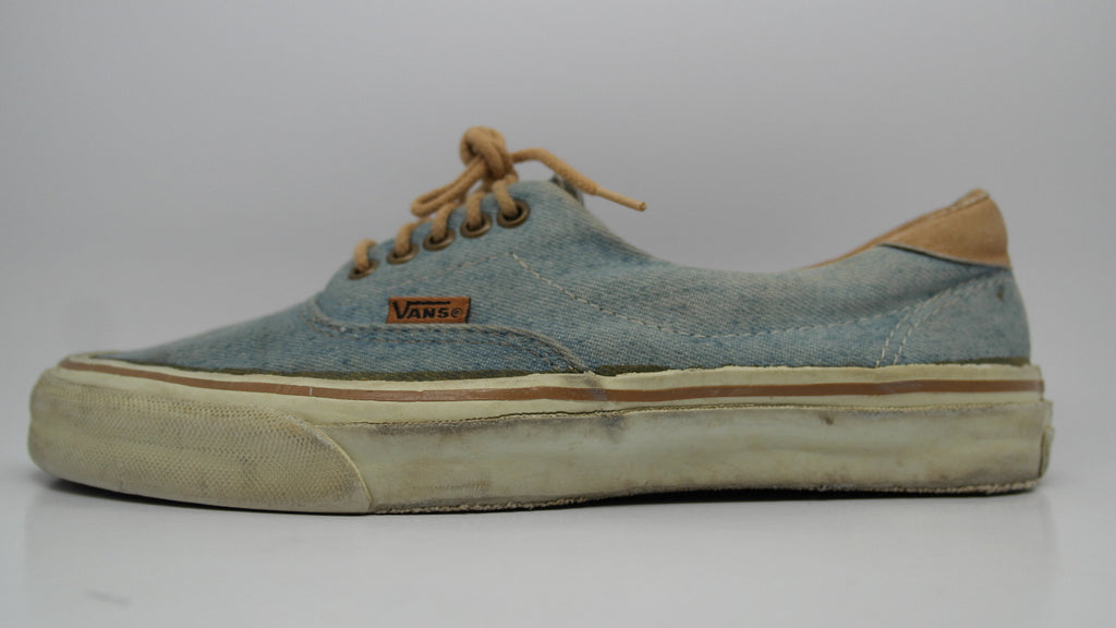 good used condition with minor canvas blemish. the rubber remains soft & flexible with very minor separation between uppers at toe crease & some stress cracking to the 1st foxing. internally there is wear to the inside toe cap & lining at the pinky toes & heels, with 1 minor split to the internal heelstay.