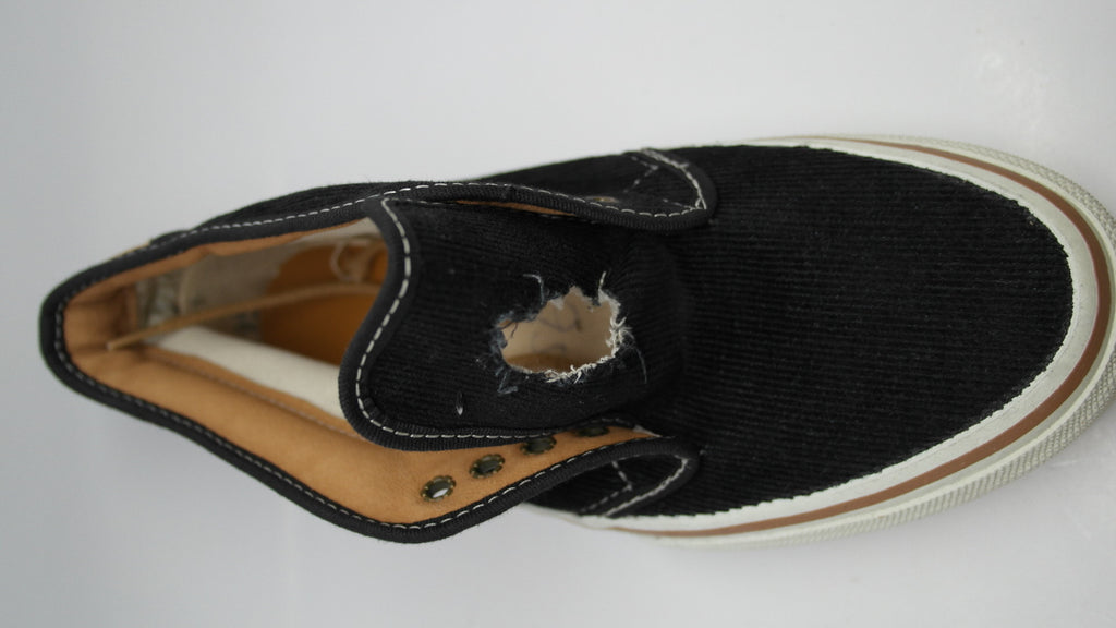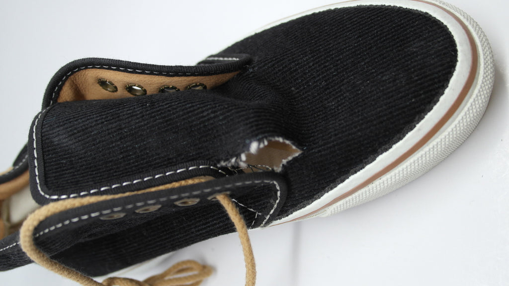 the US5.5 saw short term use as a display model with resulting yellowed rubber which may or may not lead to premature aging (see last 3rd & 4th last pics). the US7 has a hole through the tongue (see 2nd last pic). an easy patch repair. the US4.5 has a tear in the corduroy near the right eyestay (see last pic). wear at own risk!