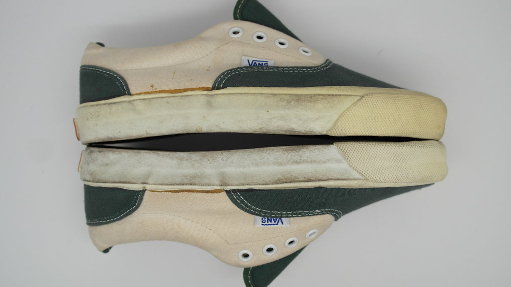 unworn with minor staining, storage wear & discolouration. possible use of right shoe as ex-display with yellowing of rubber & overglue colour change. very minor micro-cracking to first foxing however rubber remains soft & flexible. original laces missing. wear at own risk