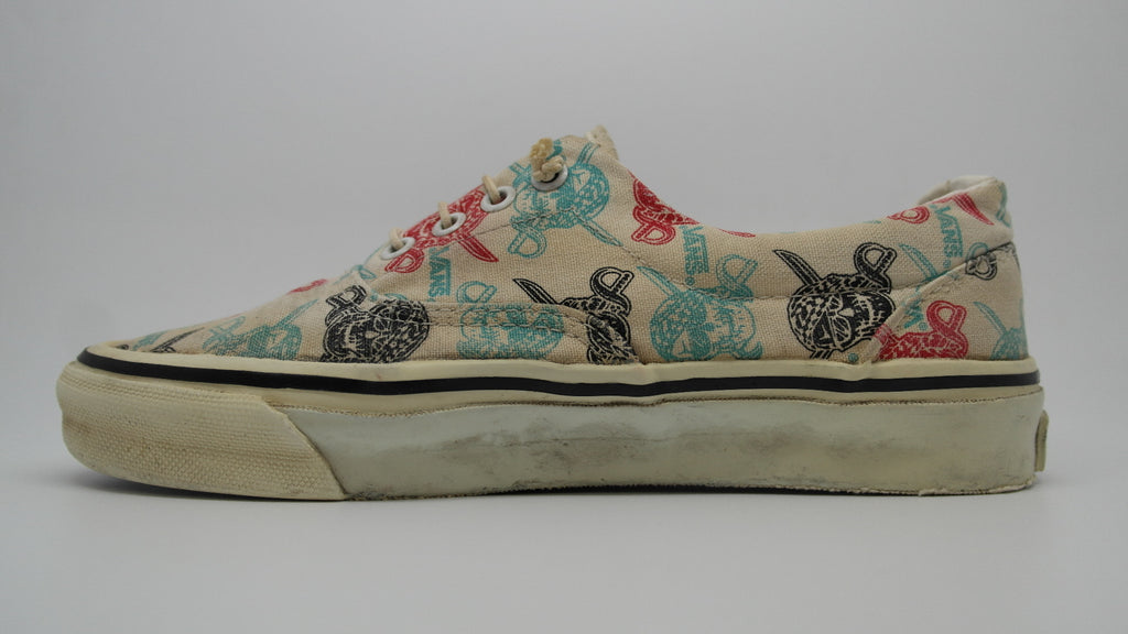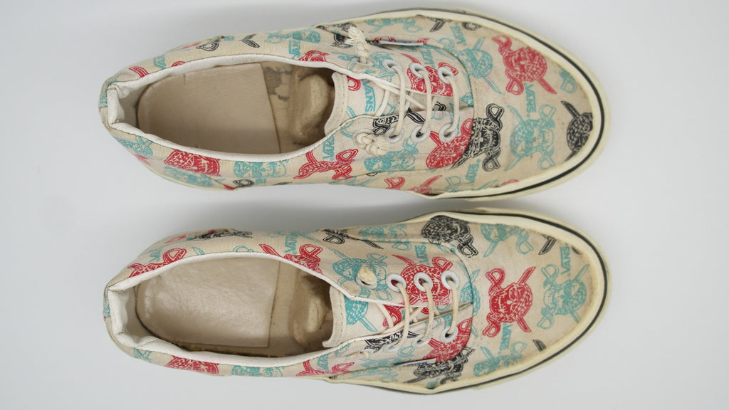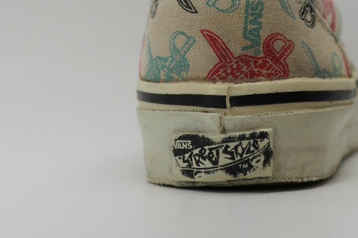 good overall condition. minor separation between rubber & uppers at all toe creases. minor splitting to vinyl collar at heel. inside toe cap wear at both toes.