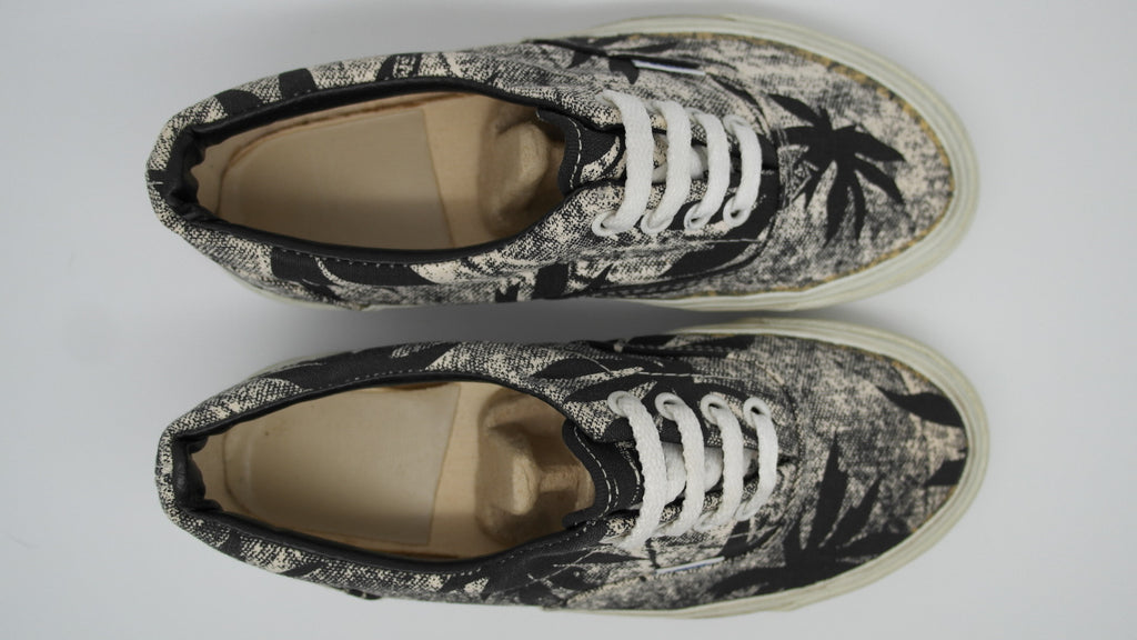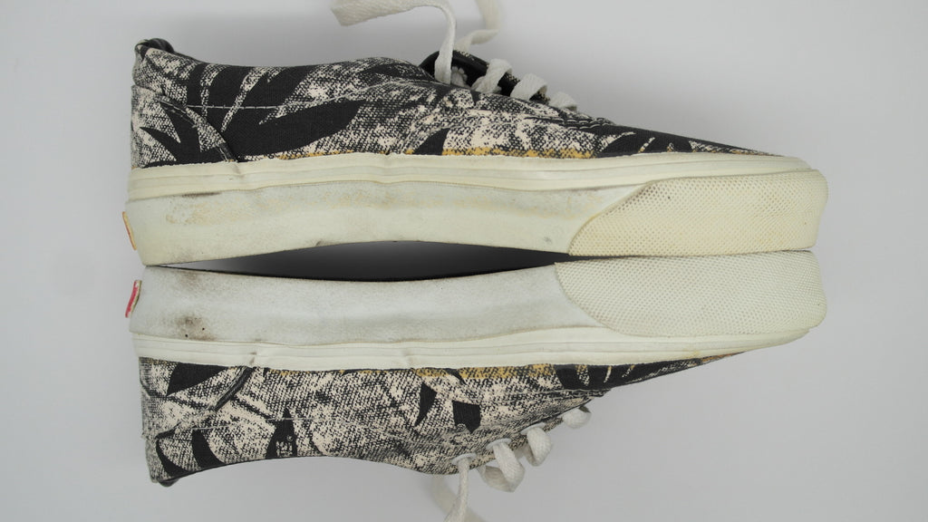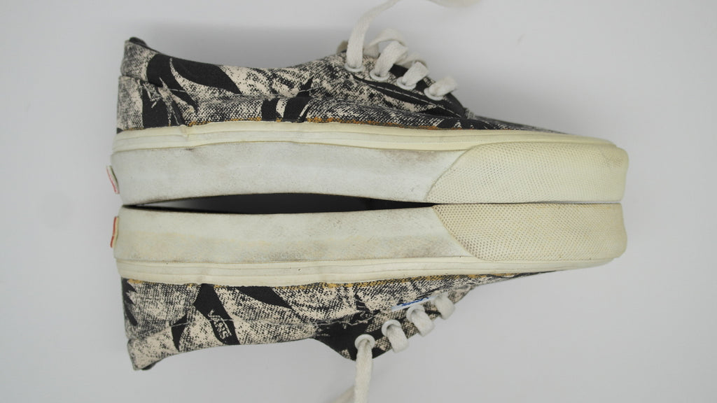 2 pairs available in the same size. 1 pair saw short-term display use with resulting discolouration to the rubber midsole. from this pair the right side of each shoe shows yellowing & may be prone to premature separation from the canvas at the toe crease. please see last 2 pics. the other pair is flawless. wear at own risk!