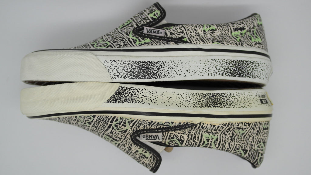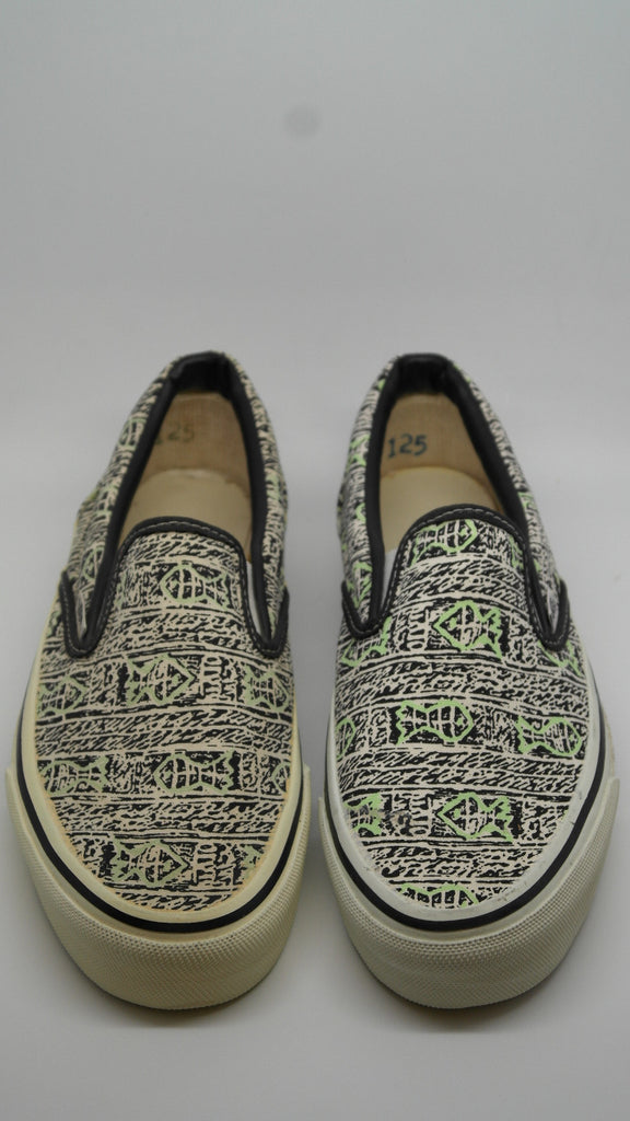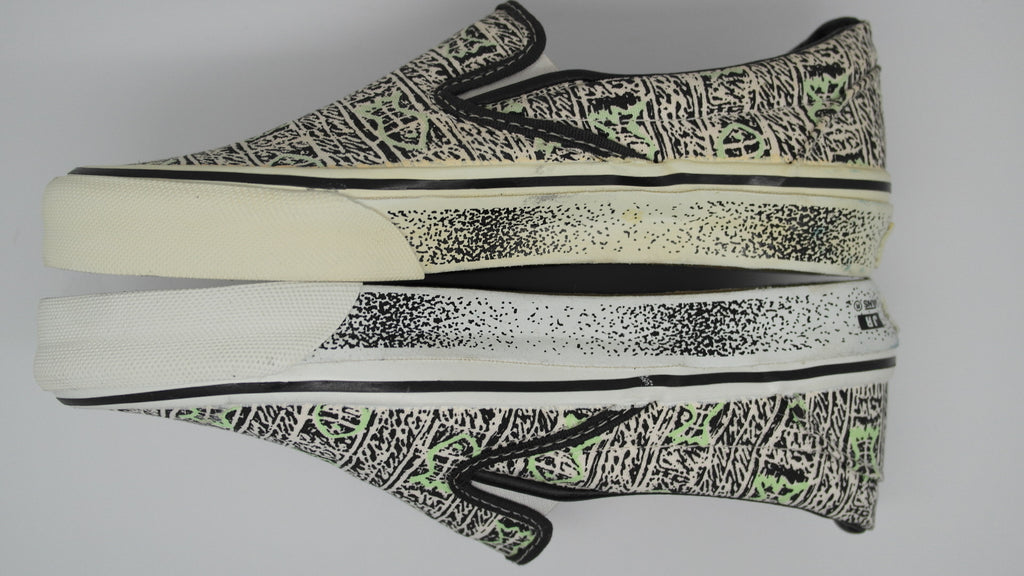 the right shoe saw use as display model with resulting canvas fade & rubber discolouration. rubber remains soft & flexible however does wrinkle upon bending & show minor dryness. wear at own risk!