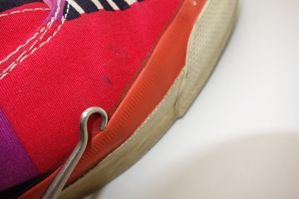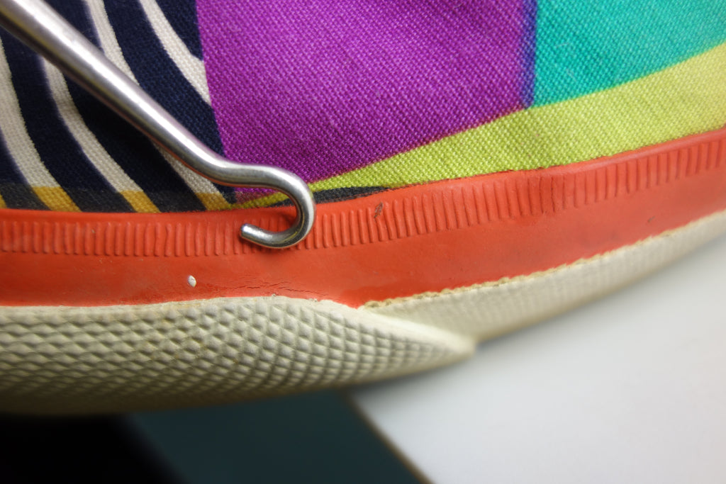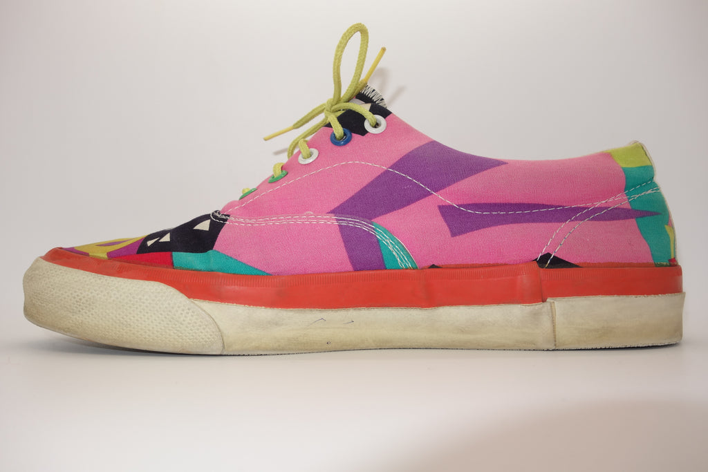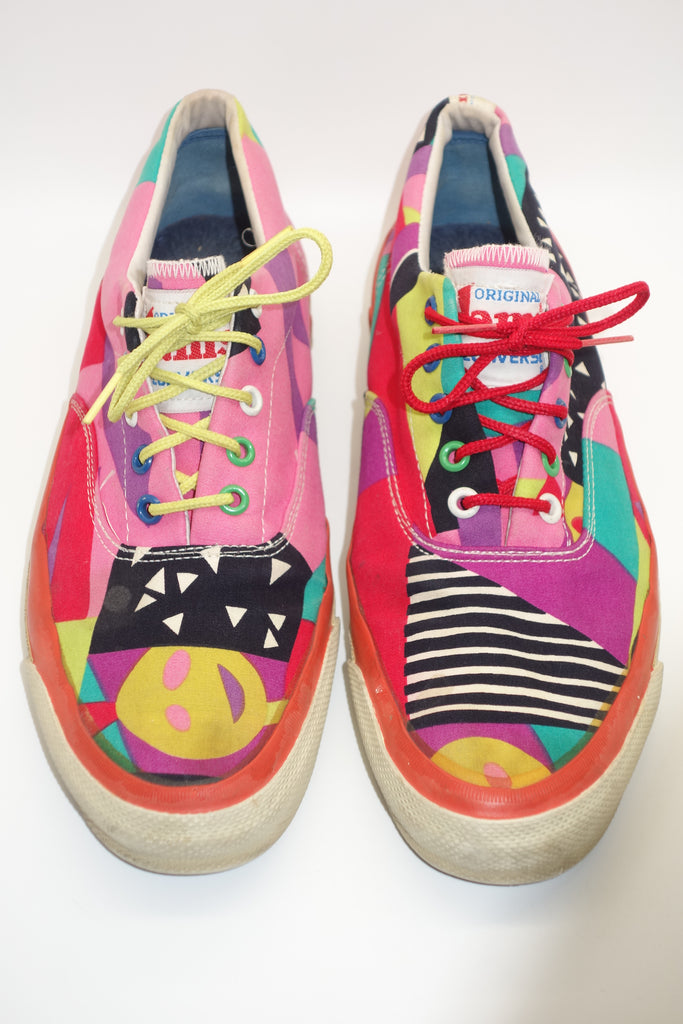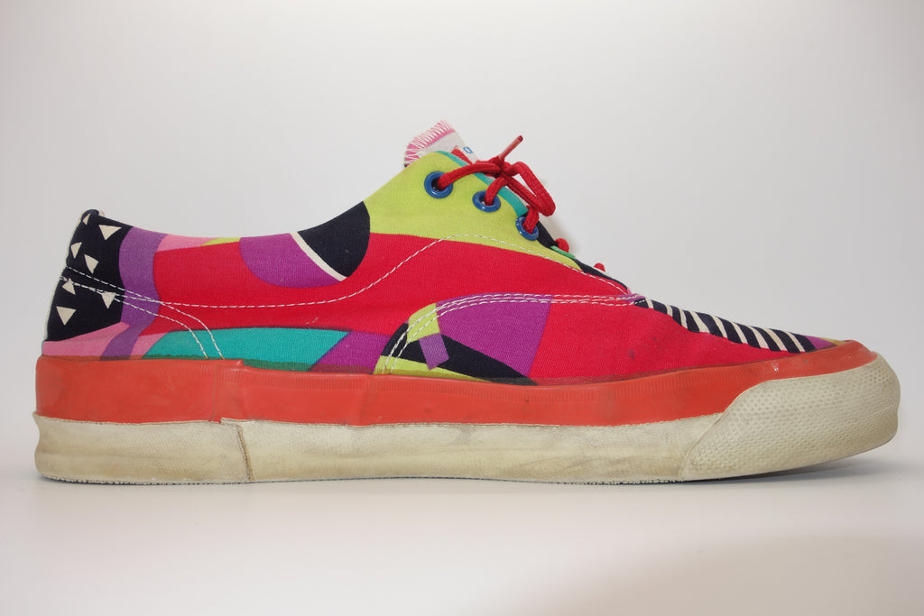 excellent used condition. all rubber remains soft & flexible with minimal separation from uppers. fiber-fill foam padded collar does perish over time leavy dry dusty natural residue inside shoes. both shoes listed inside as as US10.5, jams fit big like US11 in original vans. check measures!