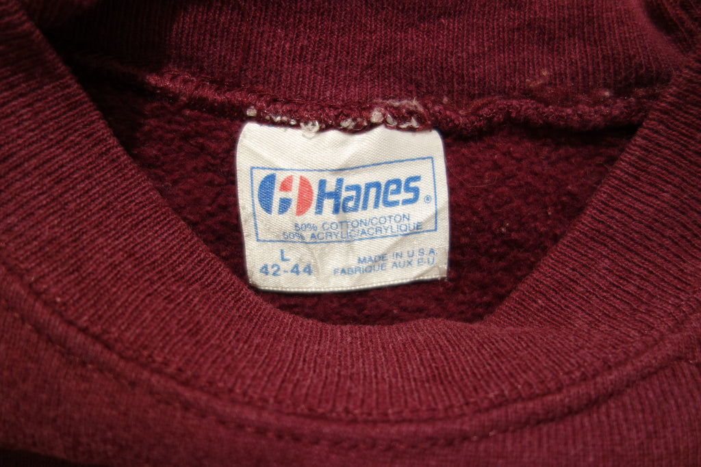 very good used condition. print shows very minor surface cracking only. some fleece thinning overall but very well loved, with next to no piling & no visible flaws. cuffs, neck & waist lost some elastic but still have plenty give. may fit small towards modern M. check measures!
