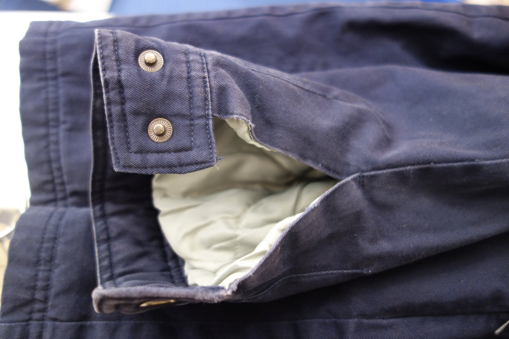made in china circa 2005 (100% navy blue cotton outer, 100% poly shell/filling)