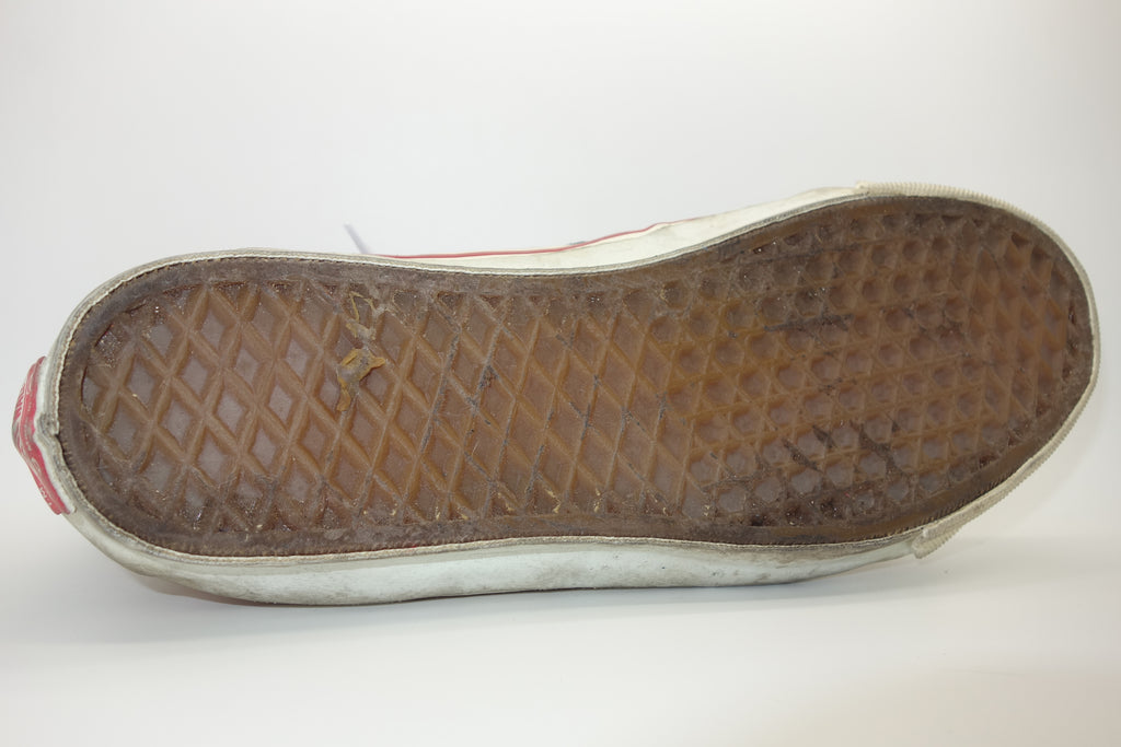 unworn & all rubber remains super soft & near flawless but for minimal stress cracking from crush during storage. the foam fiber fill in the tongue has perished & may leave a dry residue on insole & socks. minor storage wear to rubber sidewall