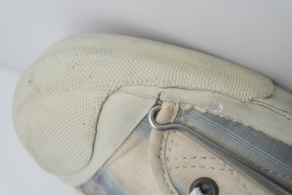 good used condition. the rubber is dry however remains soft & flexi. there is considerable micro stress-cracking to the first foxing however will hold up to normal wear. the size is not visible but confident equivalent USw8/US6. check measures!