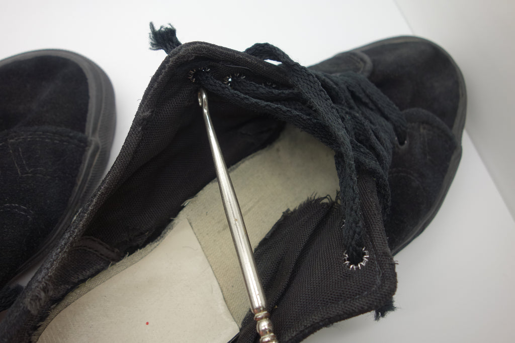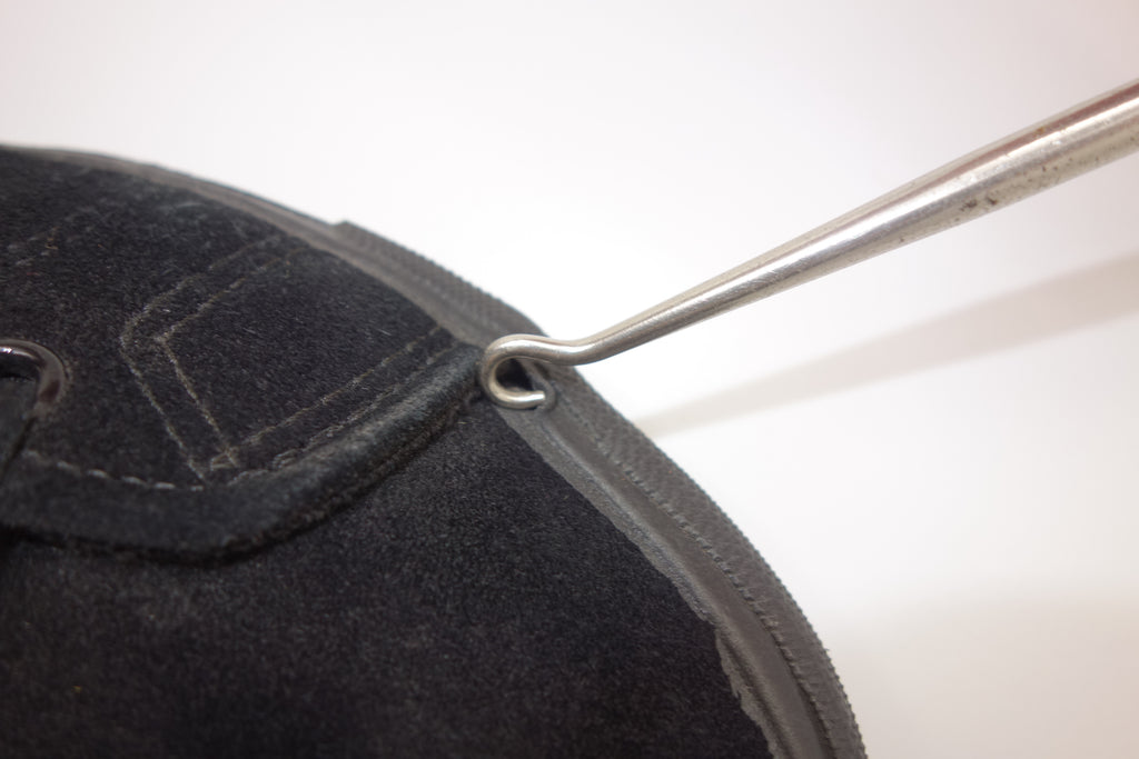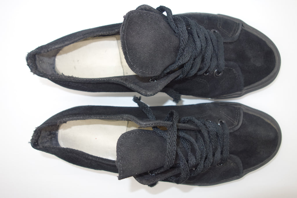 very good used condition. all rubber remains soft & flexible with minimal separation at seams. suede lining is worn on the right shoe & some wear to internal heel counter which remains intact. some fraying to top of left collar. some lace ends frayed.