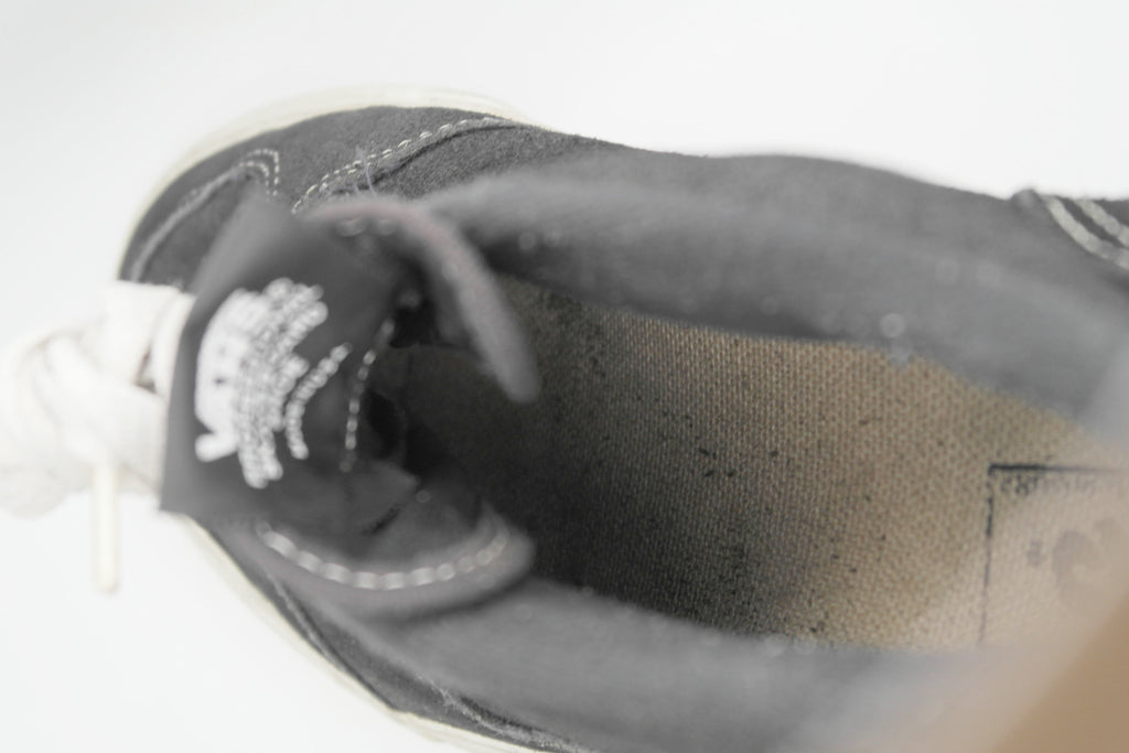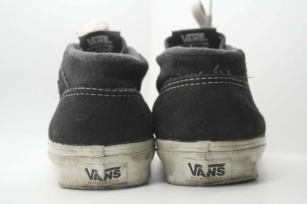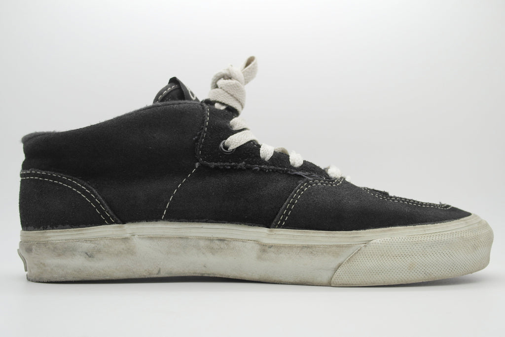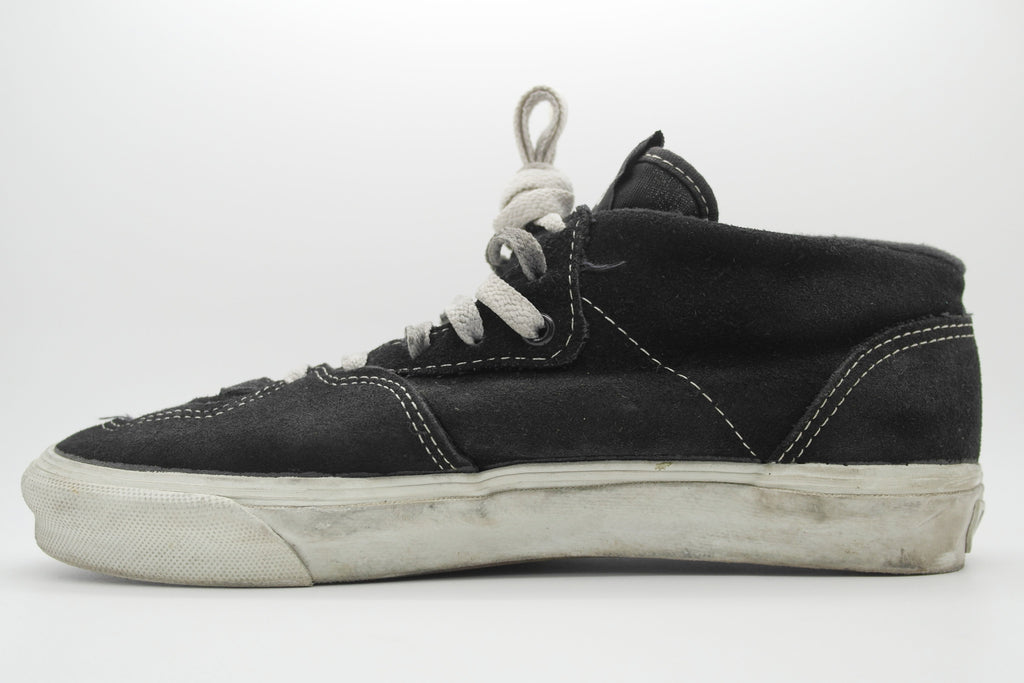 excellent used condition. rubber remains soft & flexible with very minor micro-stress-cracking in 1 area. the black fiber-fill tongue foam has perished over time resulting in an empty tongue sack & residue on insole & socks. 1 lace was removed & as such is covered with said residue. i was convinced these were navy suede however by this time the navy looked essentially black