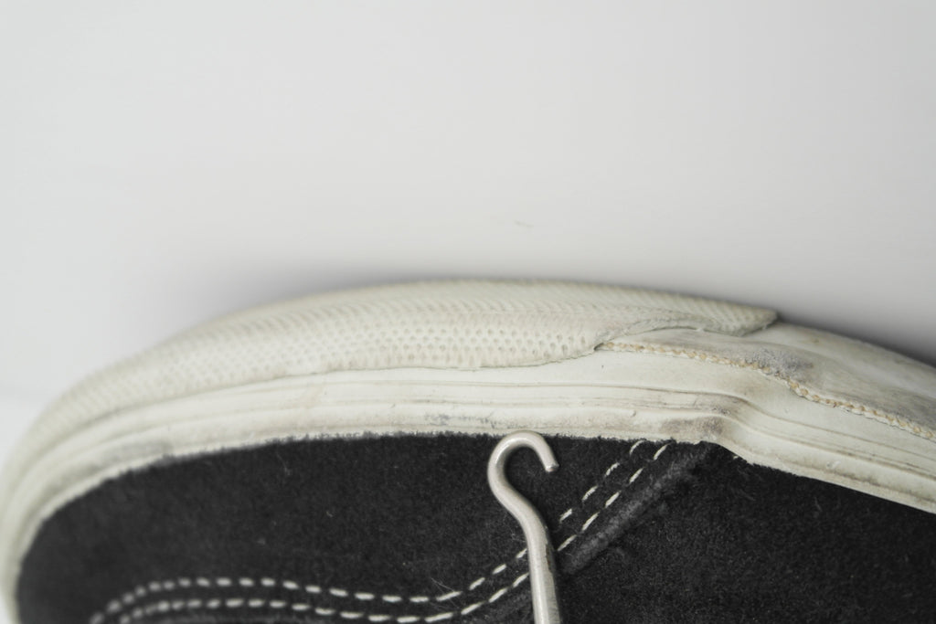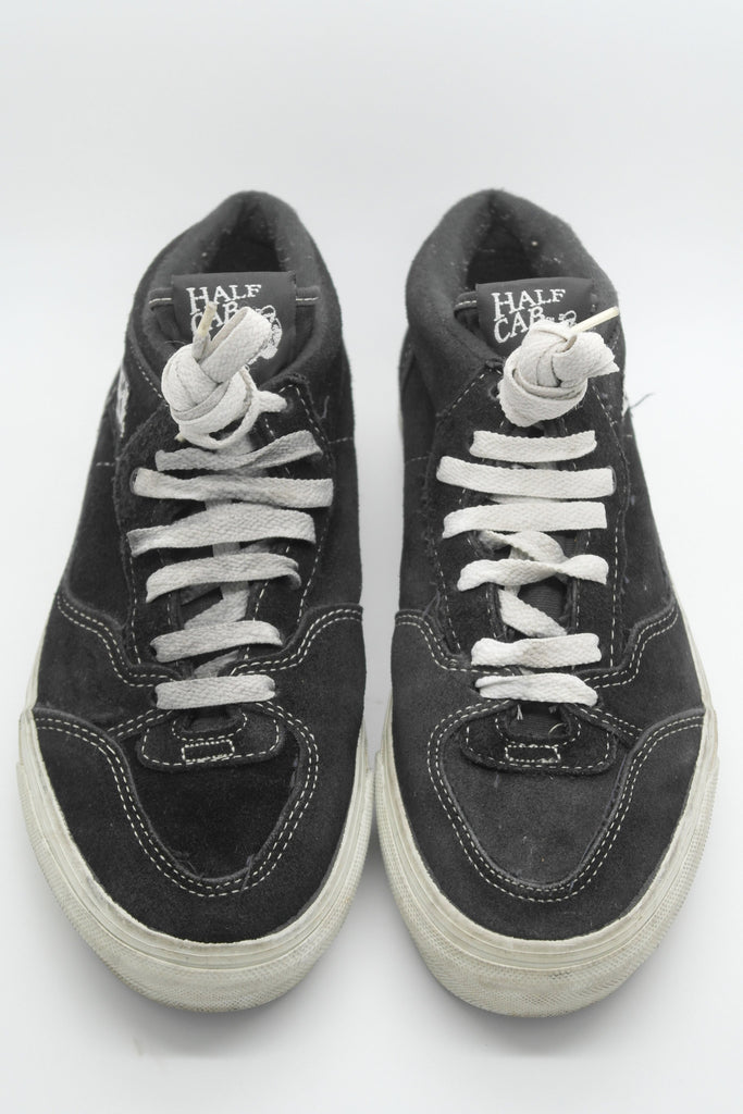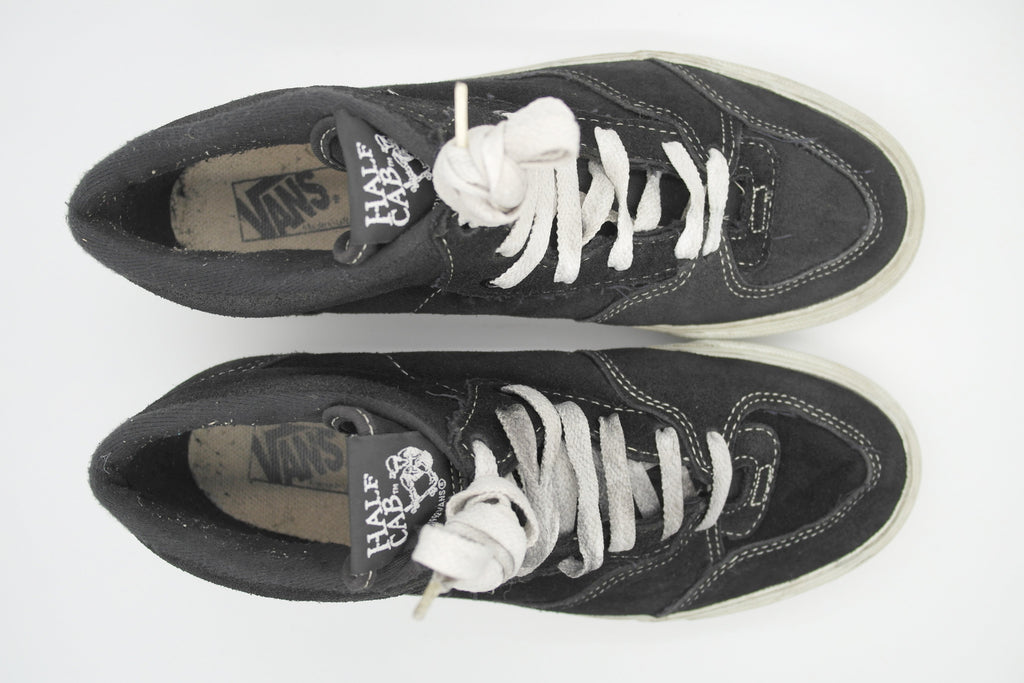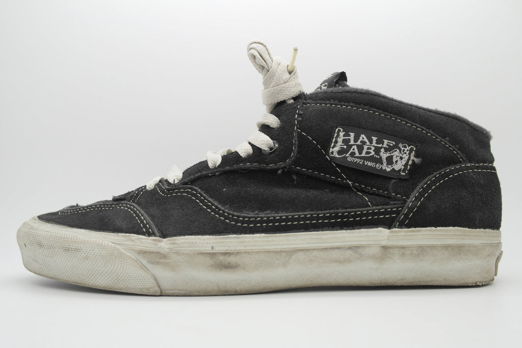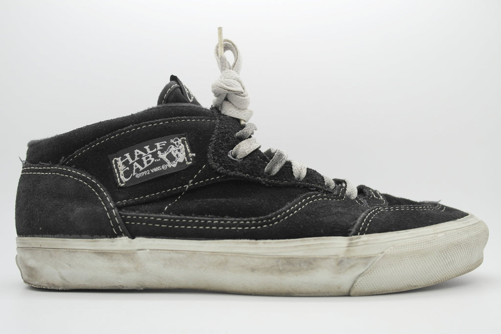 excellent used condition. rubber remains soft & flexible with very minor micro-stress-cracking in 1 area. the black fiber-fill tongue foam has perished over time resulting in an empty tongue sack & residue on insole & socks. 1 lace was removed & as such is covered with said residue. i was convinced these were navy suede however by this time the navy looked essentially black
