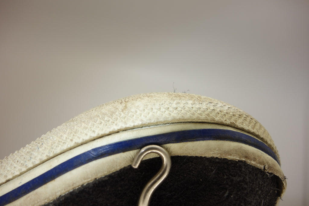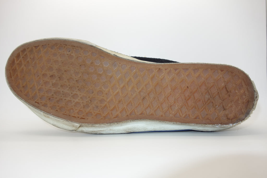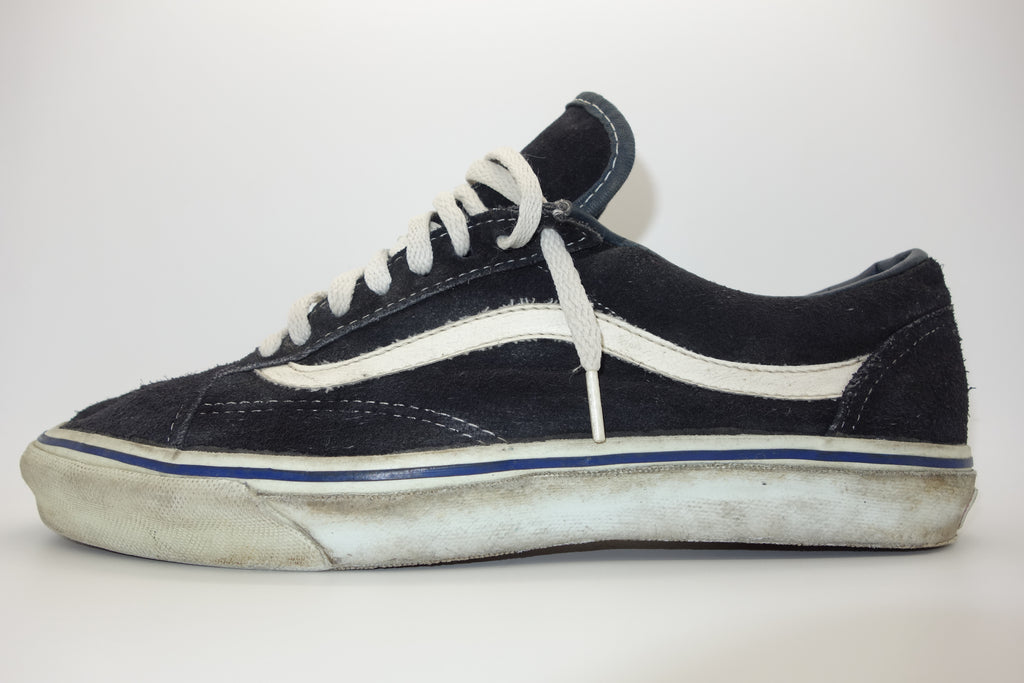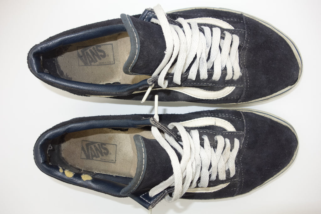 very good used condition. all rubber remains soft & flexible despite some stress cracking from crush injury. 1 area of separation from uppers at left toe. the padded tongue of mid-late 90s vans is prone to deterioration. the foam herein is intact however may be prone to breakdown over time which may leave black residue inside the shoe & turn socks black. wear to lining of internal heel counter however plastic remains intact
