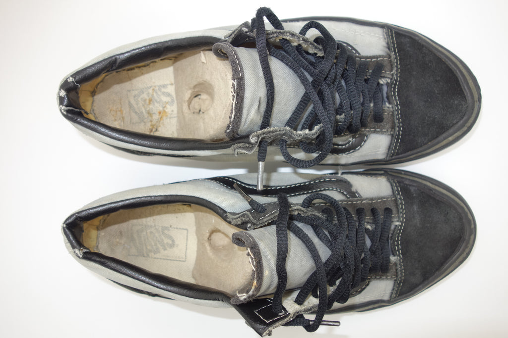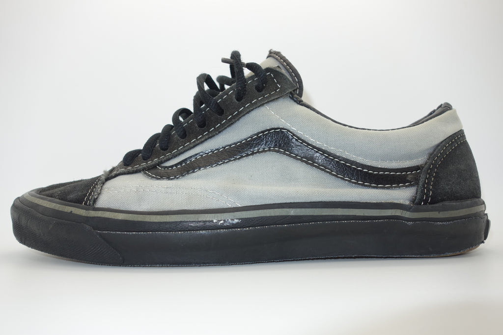 good used condition. rubber remains soft & flexible albeit for the grey foxing stripe which has hardened in parts, including the left toe. all black rubber is soft! the waffle is a bit crusty but not slick & under the top layer with be malleable. some wear to the internal heel counter lining & 1 or 2 splits to the counter itself however no breakdown. some splits to vinyl collar. size not visible but confident of US10.5 if not bigger. laces not original. the insole is hard in places & foam breakdown may occur but on the whole is soft.