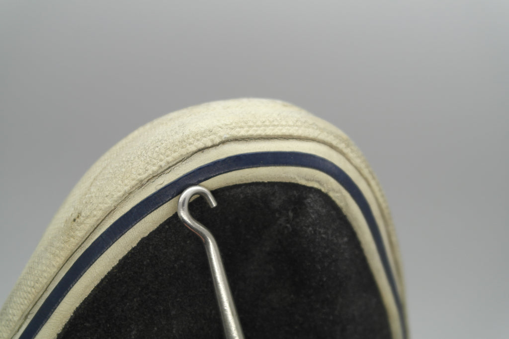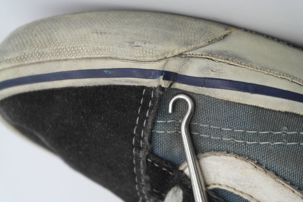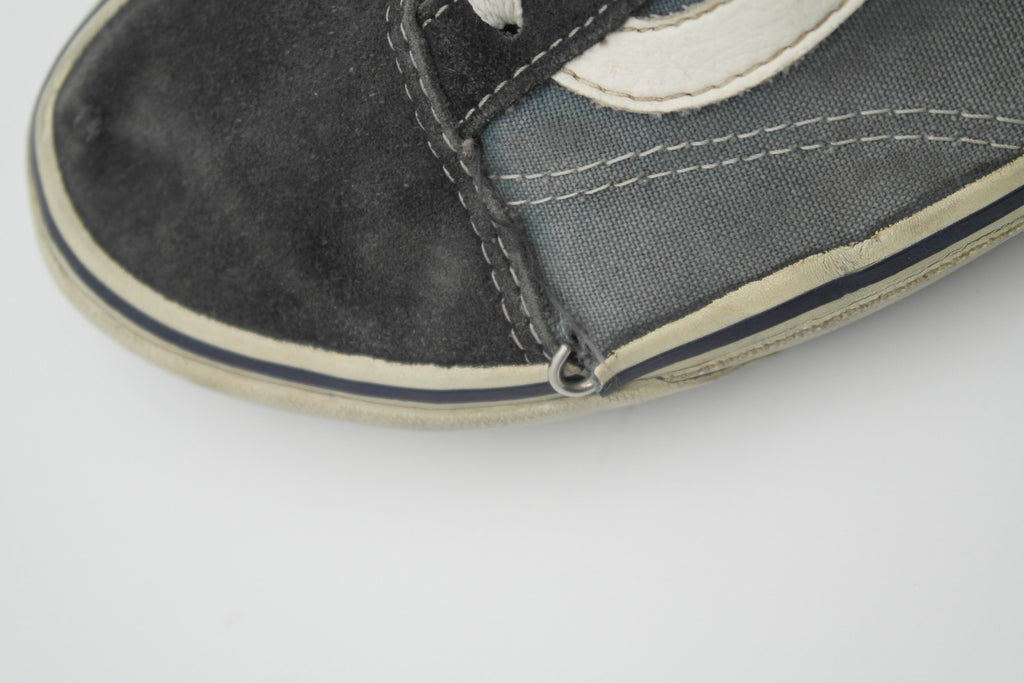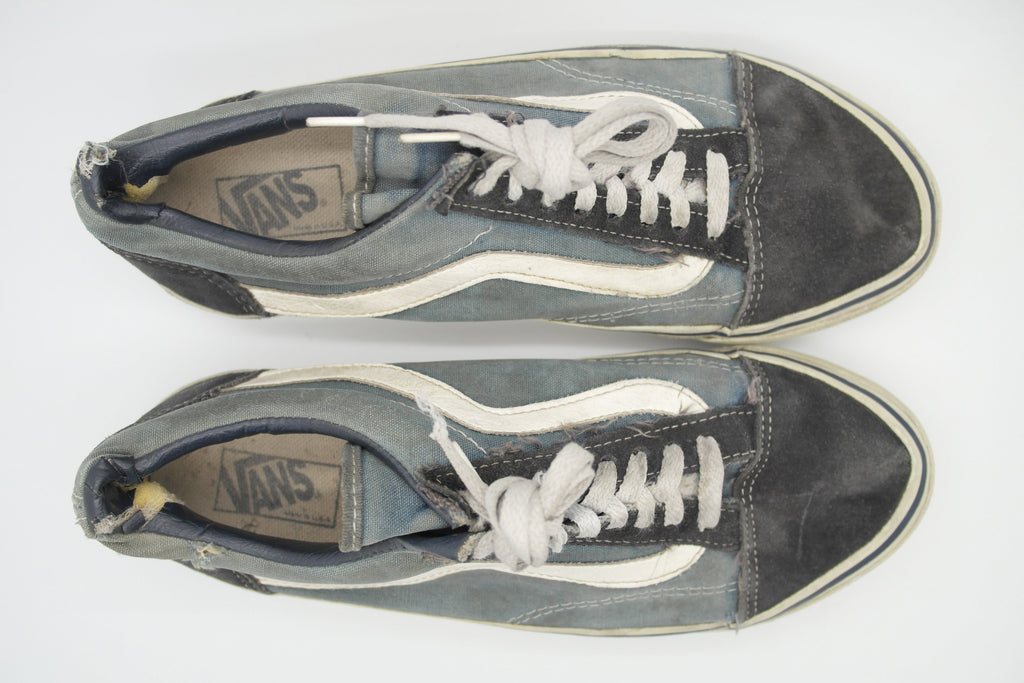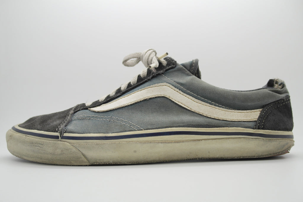 decent used condition. show significant wear. rubber is soft & flexi however widespread micro-cracking, separation with uppers, wear to outsole & holes at heel. internal heel is pulped with internal counter breakdown & vinyl collar blowouts. small hole at left big & pinky toes