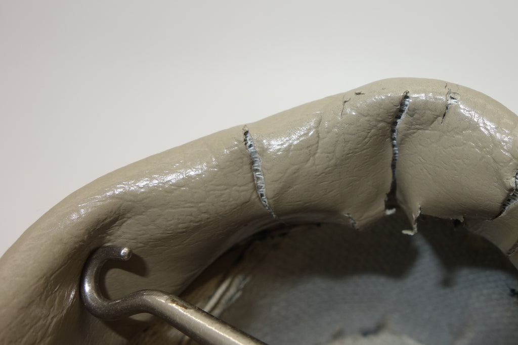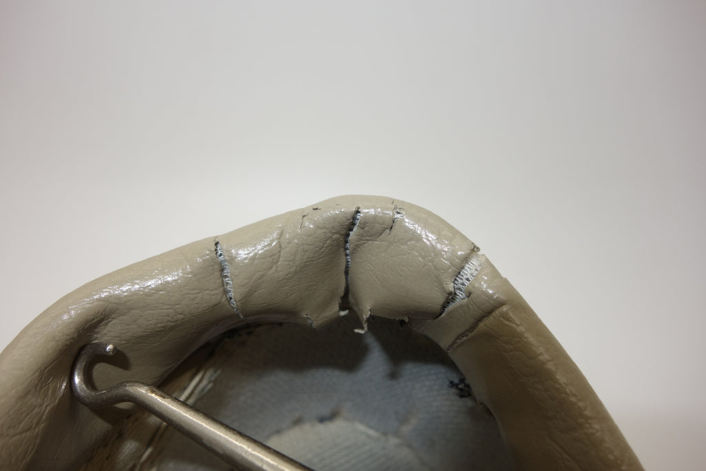 very good used condition. all rubber remains soft & flexible despite some separation from uppers at toe bends. the vinyl collar shows some splitting mostly to the base, but does not expose foam. minimal erosion to the insole where arch inserts were removed.