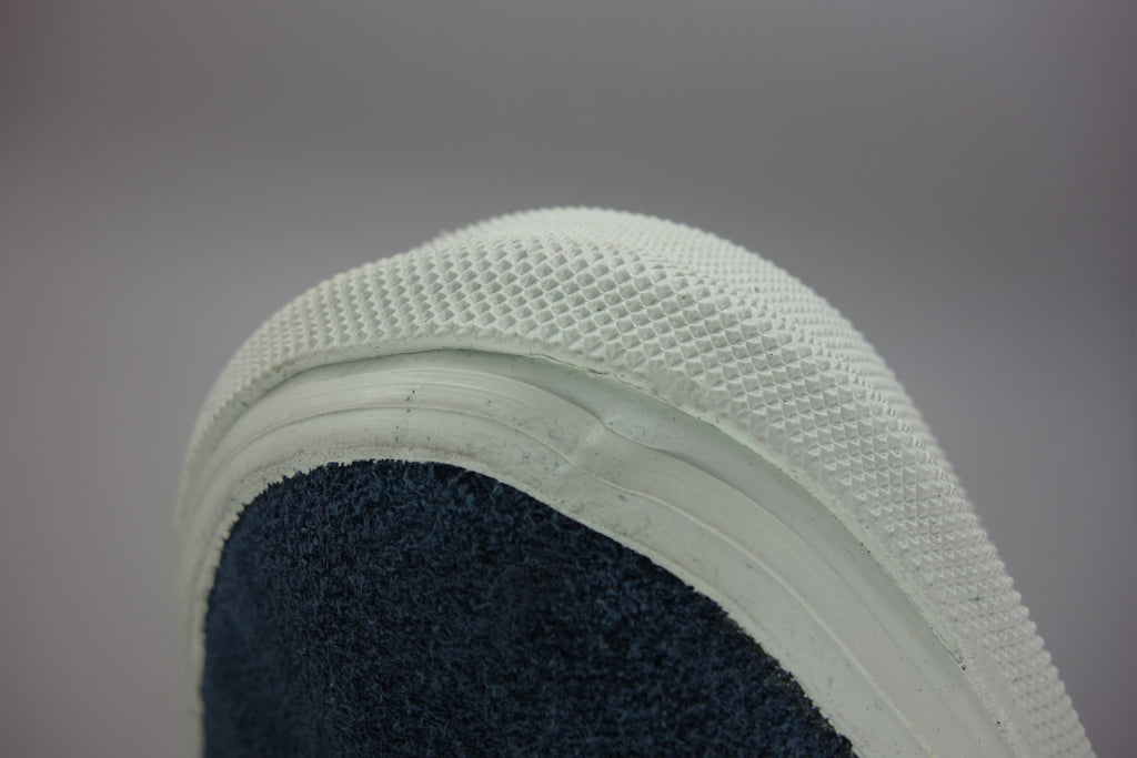 flawless! compression dent in rubber at toe is not an indicator of rubber change. the padded tongue of mid-late 90s vans is prone to deterioration. the foam is mint however may be prone to breakdown over time which may leave black residue inside the shoe & turn socks black.