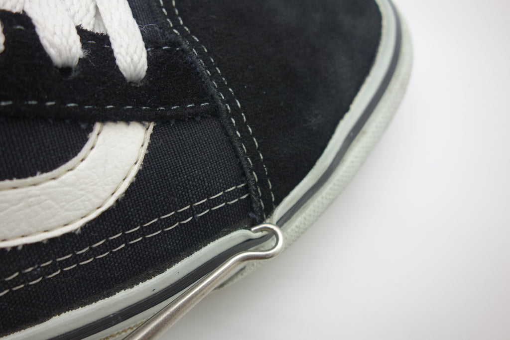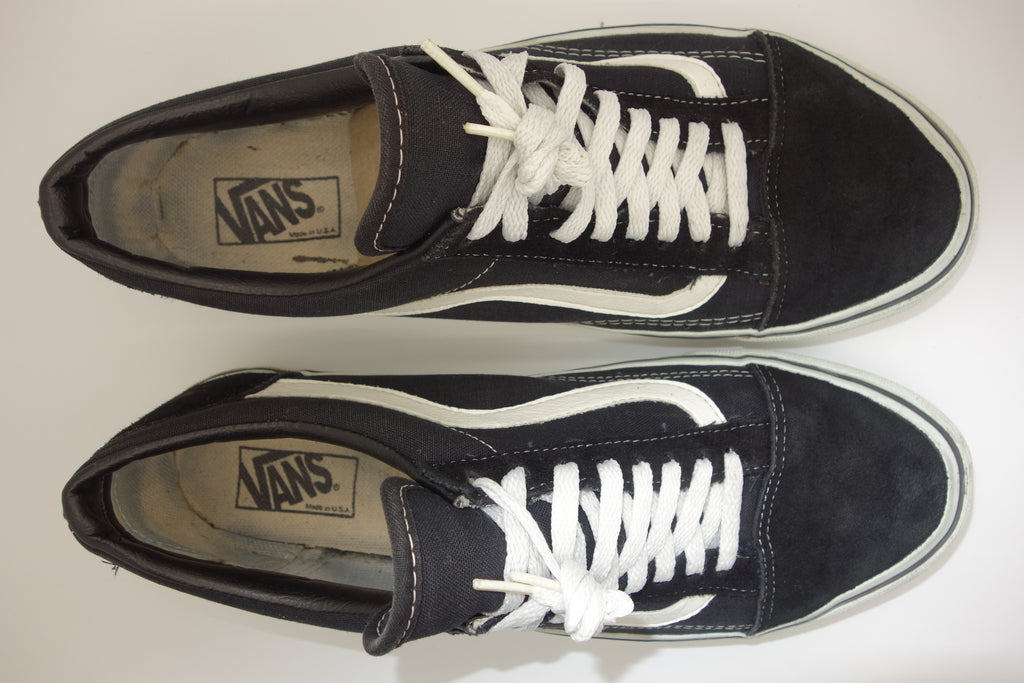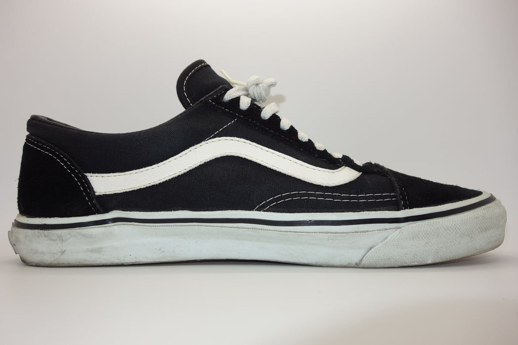 superb used condition. rubber remains soft & flexible with negligible separation from uppers only. the padded tongue of mid-late 90s vans is prone to deterioration. the foam is mint however may be prone to breakdown over time which may leave black residue inside the shoe & turn socks black.