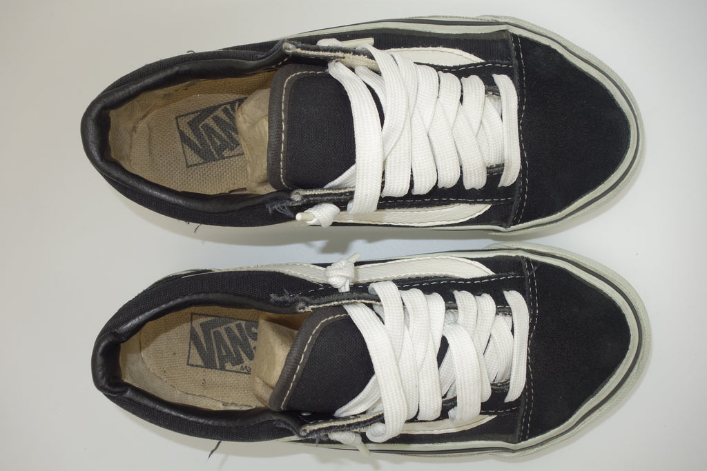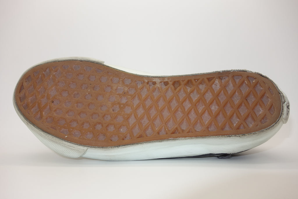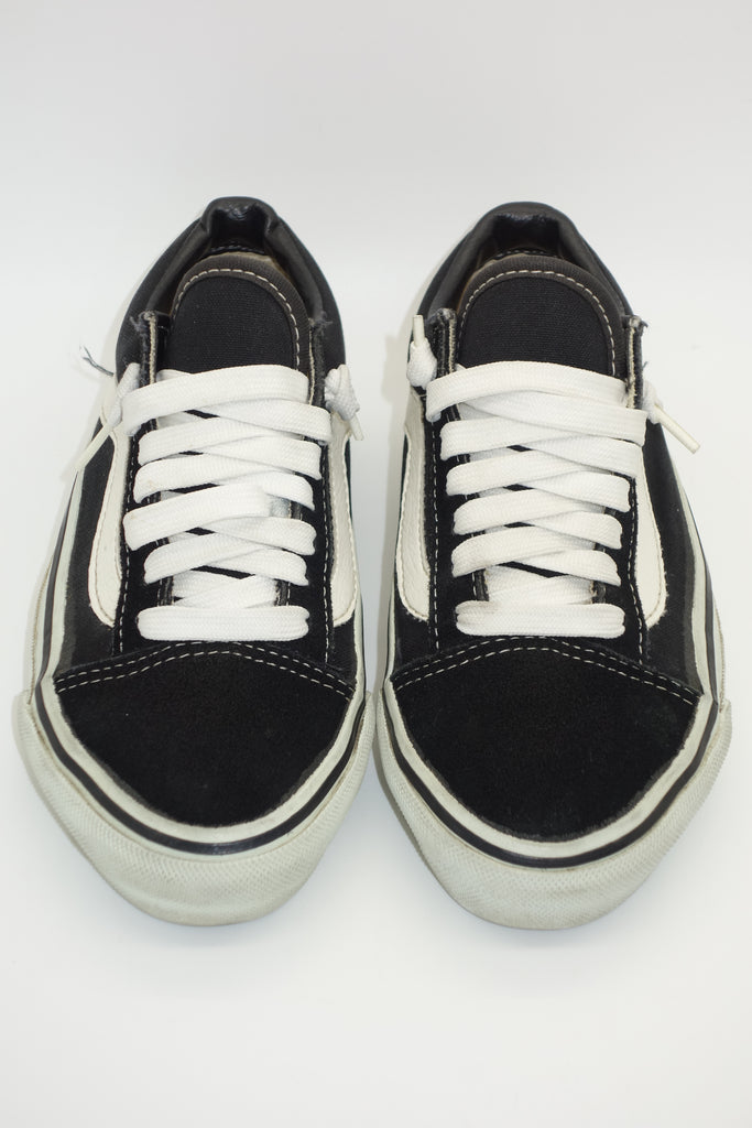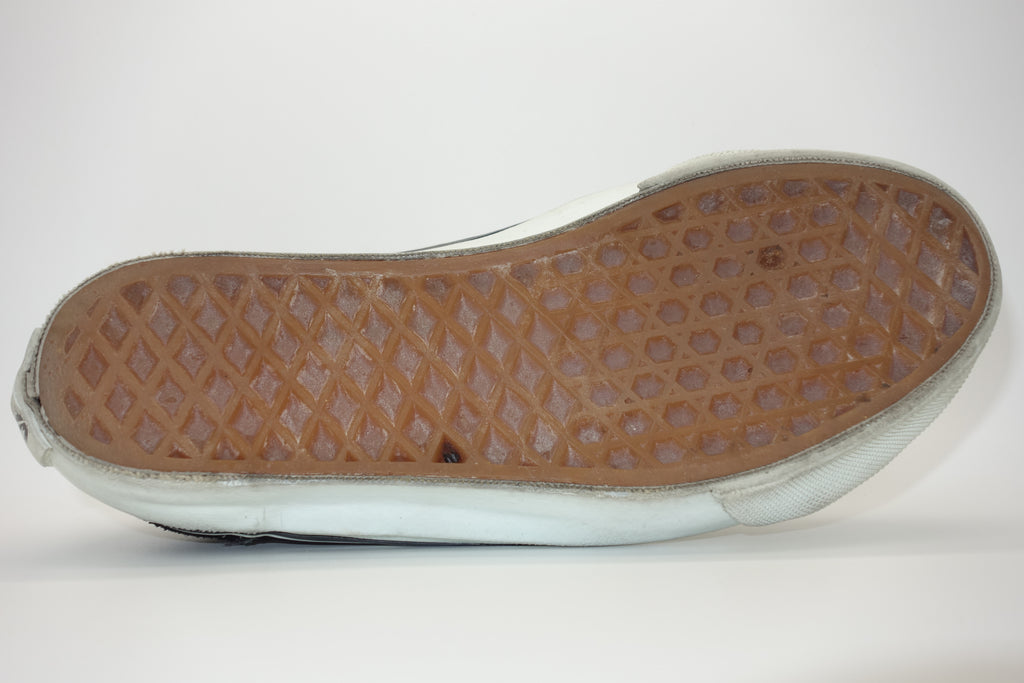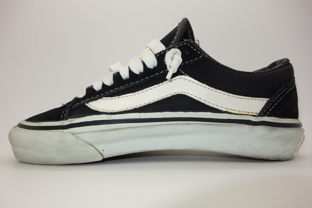 excellent used condition. rubber remains soft & flexible with minor separation from uppers only. laces not original. the padded tongue of mid-late 90s vans is prone to deterioration. the foam is mint however may be prone to breakdown over time which may leave black residue inside the shoe & turn socks black.
