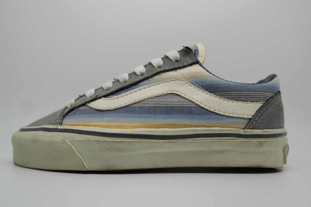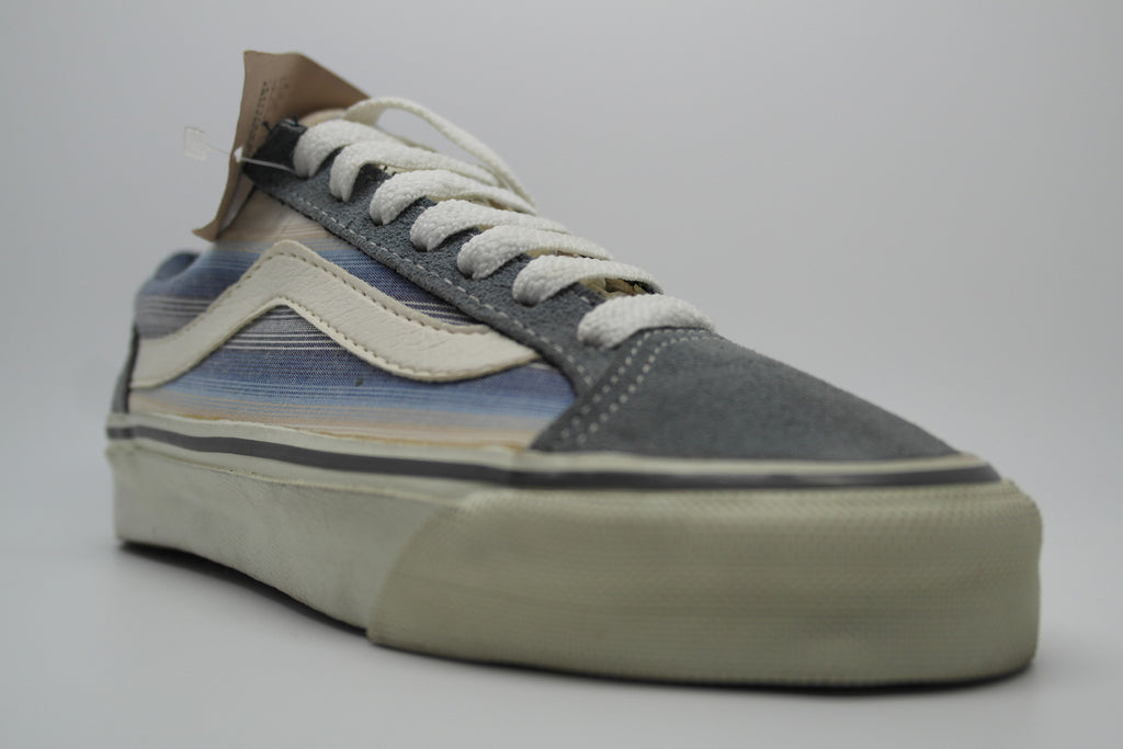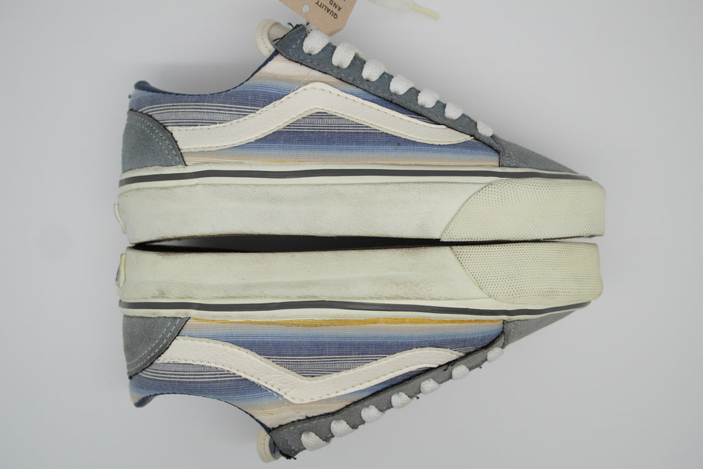 the left shoe saw short term exposure to light with resulting crusted overglue & wrinkling upon bend. this may lead to premature aging however from experience will not effect general wear