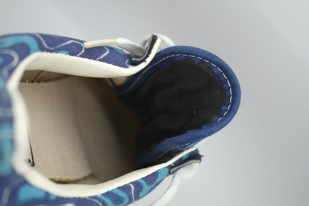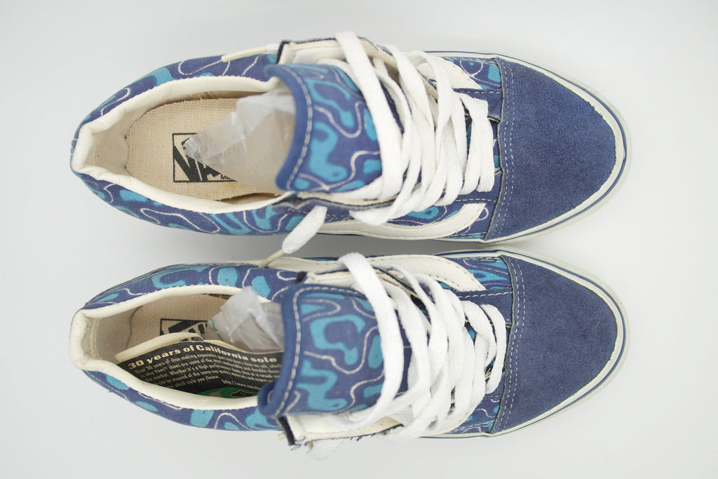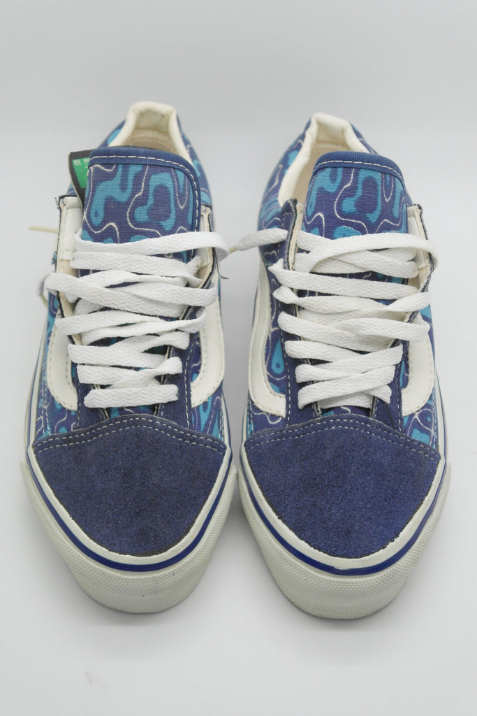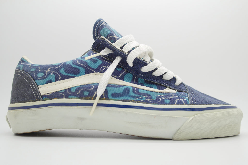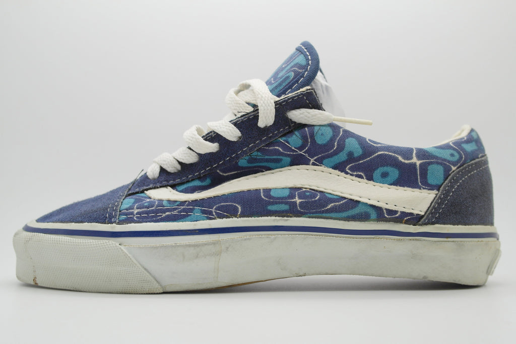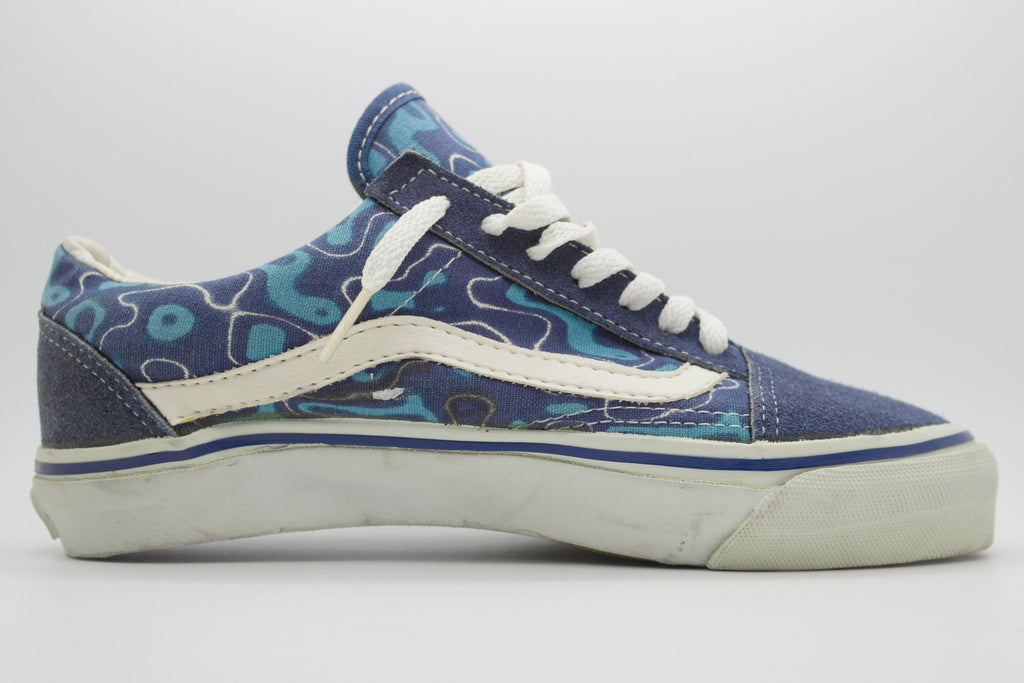 unworn however do show storage wear. the rubber on these appears to be normal if not a bit stiff. there is wrinkling upon bend to the foxing however nothing indicates these will not hold up to normal wear.... apart from the fact that others from same era from same owner showing defects. the heels show minimal discolouration & dryness from exposure to light. the padded tongue of mid-late 90s vans is prone to deterioration. the foam on these has begun to perish & bunch at the base of the tongue & may be prone to further breakdown over time, which may leave black residue inside the shoe & turn socks black. listed as USw8.5 they fit small however like USw8. the original sticker still attached has peeled away. wear at own risk!