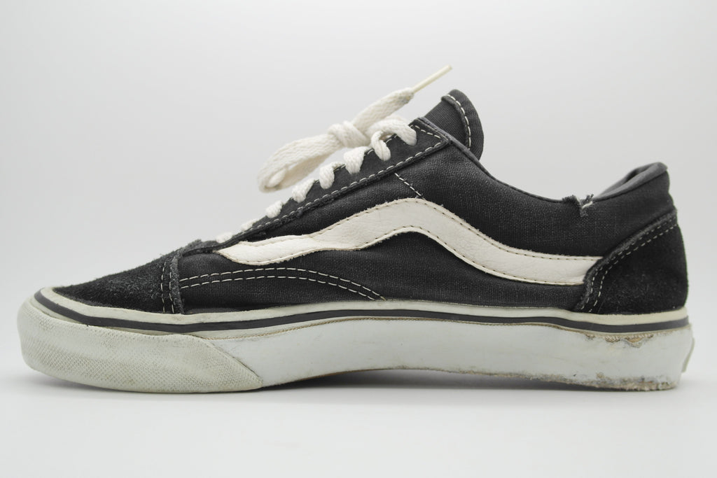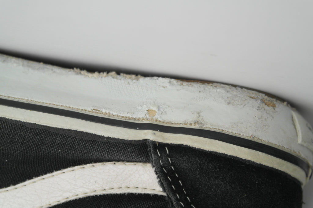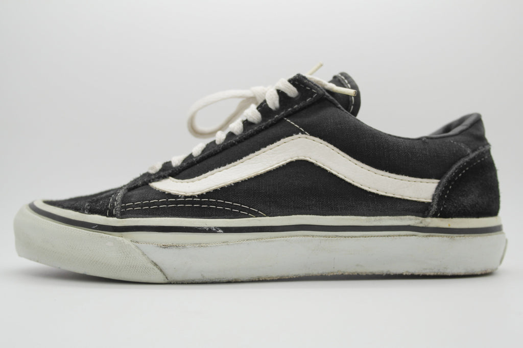 very good used condition. possibly machine-washed with minor wet rot to midsole/waffle edge, which is tacky however can be remedied with talcum powder. rubber remains soft & flexible with minor separation with uppers at toe crease. 2 splits to canvas at the collar with 1 being significant however should not worsen. the top layer of the right insole has been removed. it remains as smooth foam to the ball of foot & thereafter some of the footbed is exposed. being womens sizing they fit narrow & suit best female feet or men with narrow feet. padded tongue may be prone to foam breakdown over time however remains now intact.