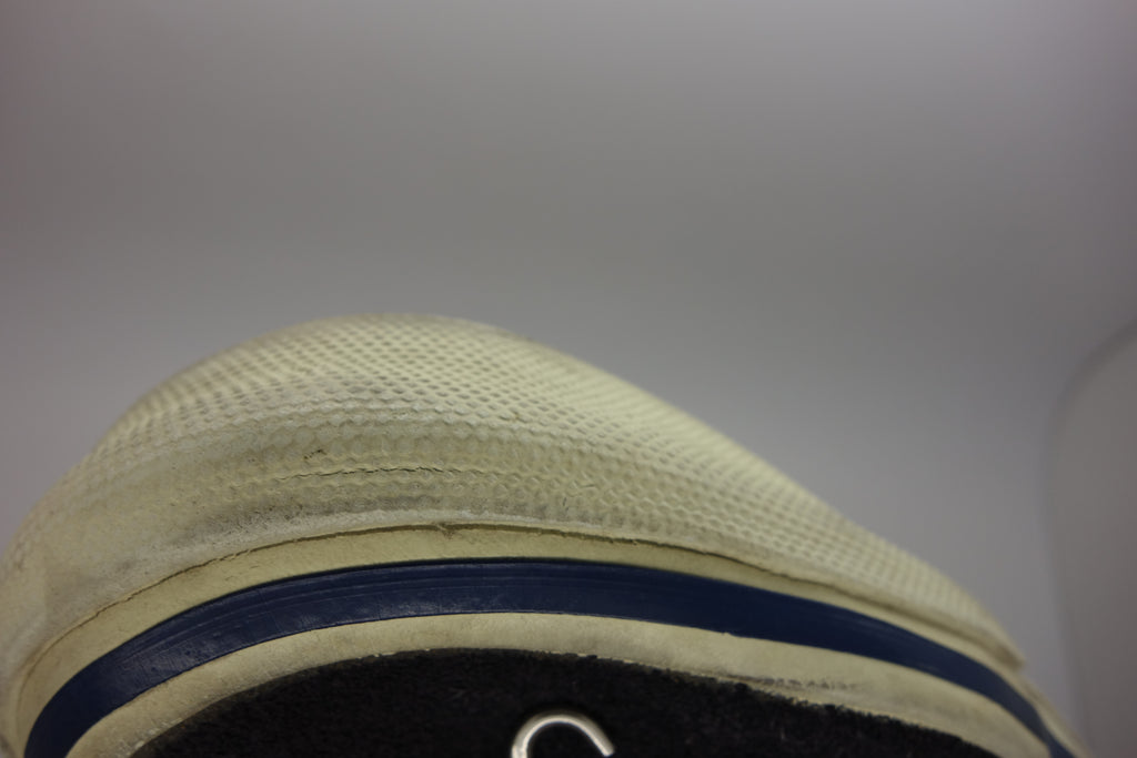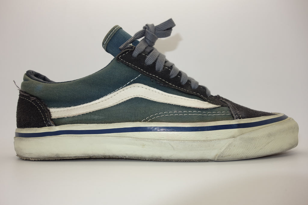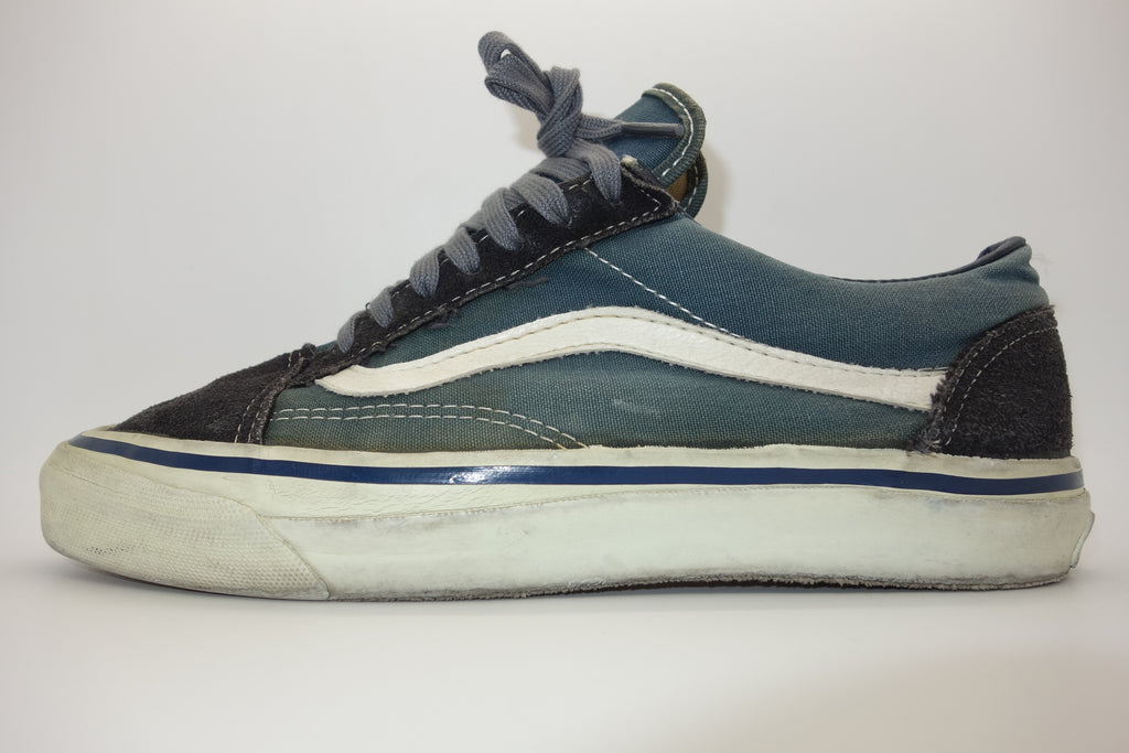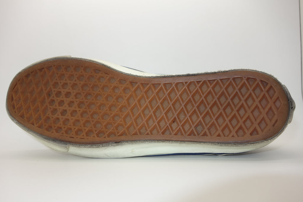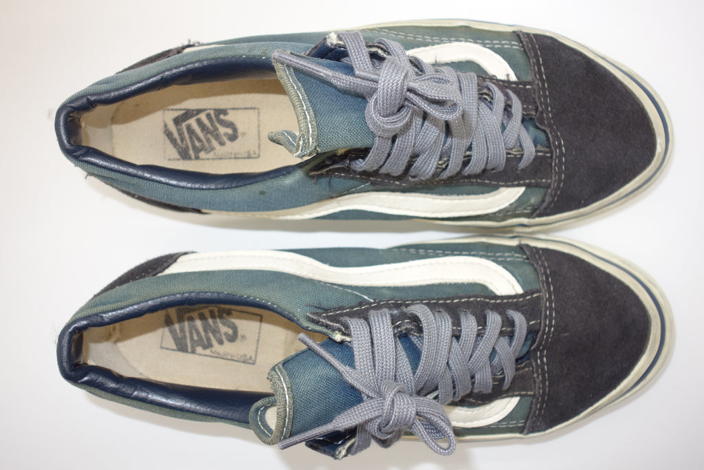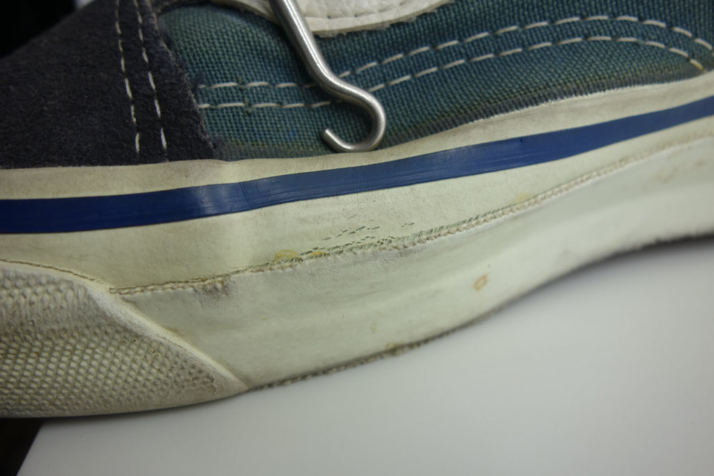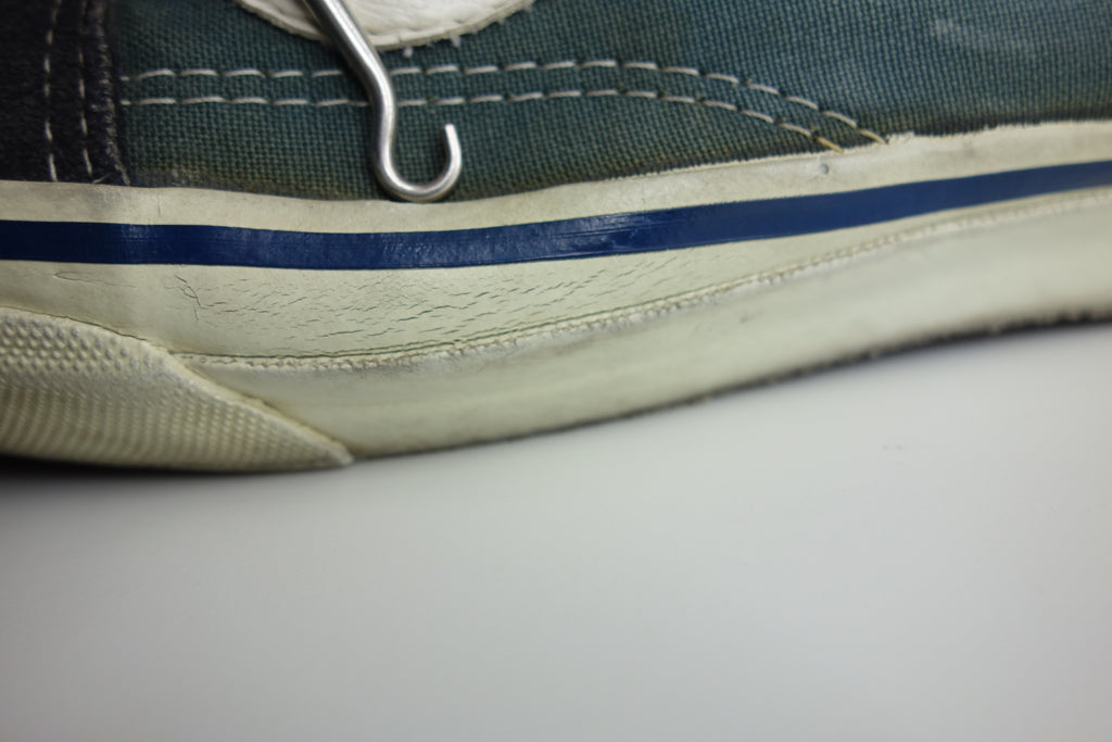 very good used condition. rubber remains soft throughout. some minor separation from uppers at toes creases & minimal stress cracking but will hold up to normal wear. thin tongue wont deteriorate. fade to canvas gives greenish tones. womens sizes fit narrow & suit best womens feet or men with narrow-normal feet. laces not original
