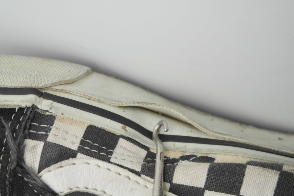 excellent used condition. the rubber midsole shows dryness however remains soft & flexible. minimal separation between rubber & uppers with minor splitting at toe crease seams & micro stress-cracking from crush injury. padded tongue foam remains intact at this time. from experience will hold up to normal wear.