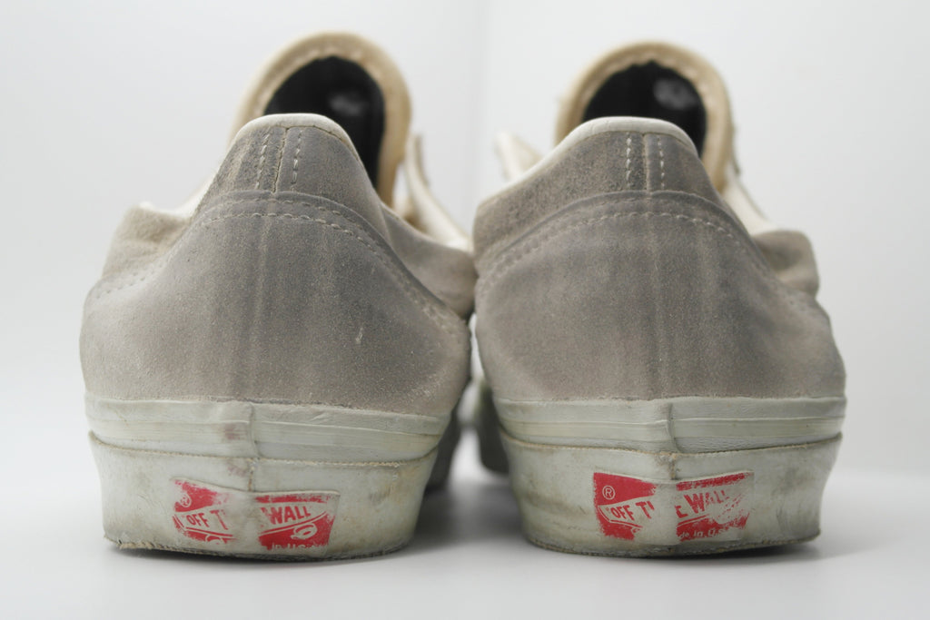 excellent used condition. shoes were used convertible-style as slippers, with heel folded manually inside. resulting form is misshapen however will re-form with regular wear. the internal heel counter was bent however shows no sign of cracking internally. the collar was clamped for a short time to photograph the shoes however unless worn regularly the shape will return to slipper form. otherwise shoes show very little wear. midsole shows some impression marks however rubber remains soft & flexible with micro-cracking at heel only & 1 flesh wound at the toe. laces not original & are short. the foam on these has compressed only however may be prone to breakdown over time which may leave black residue inside the shoe & turn socks black.