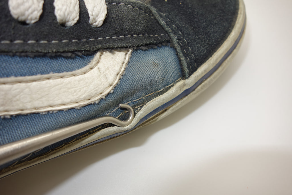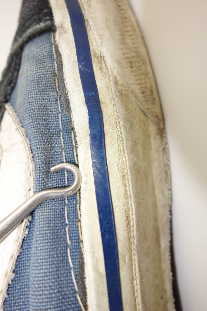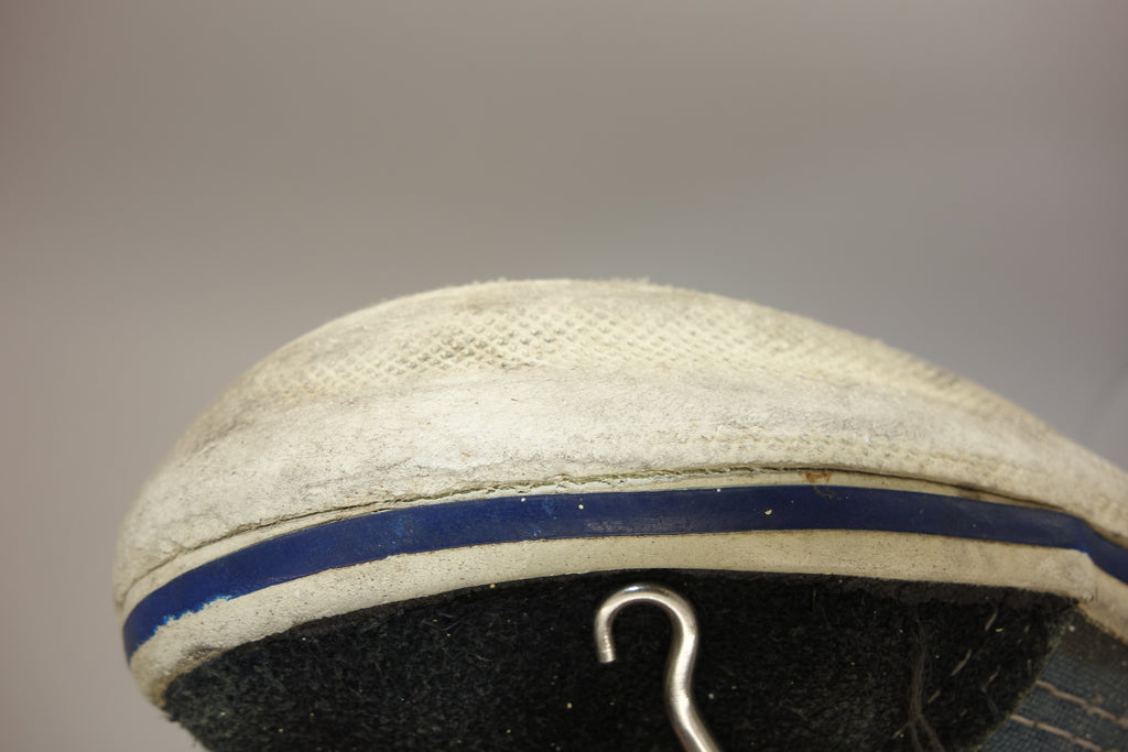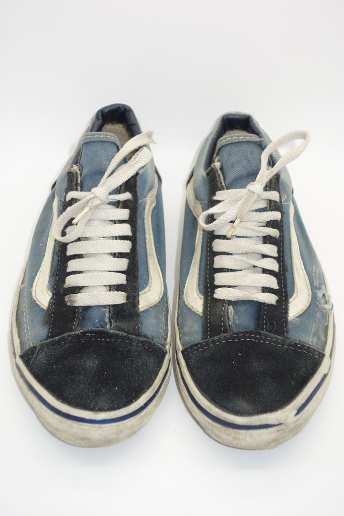 good used condition. were skated however remain structurally sound. rubber remains soft & flexible. ollie hole through top layer canvas however not through bounce-stitch reinforcemen. some splitting to top of vinyl collar on left shoe. pre-padded tongue era.