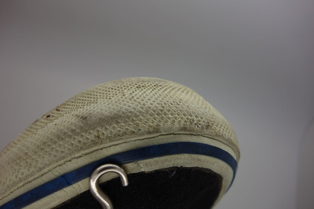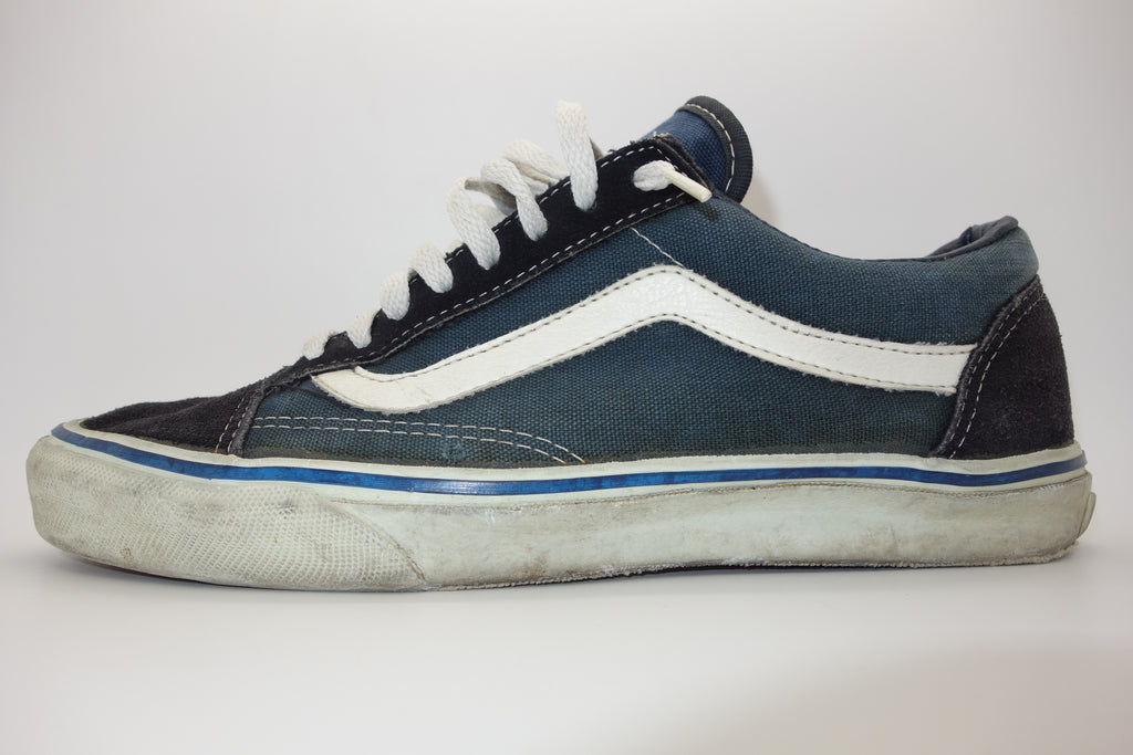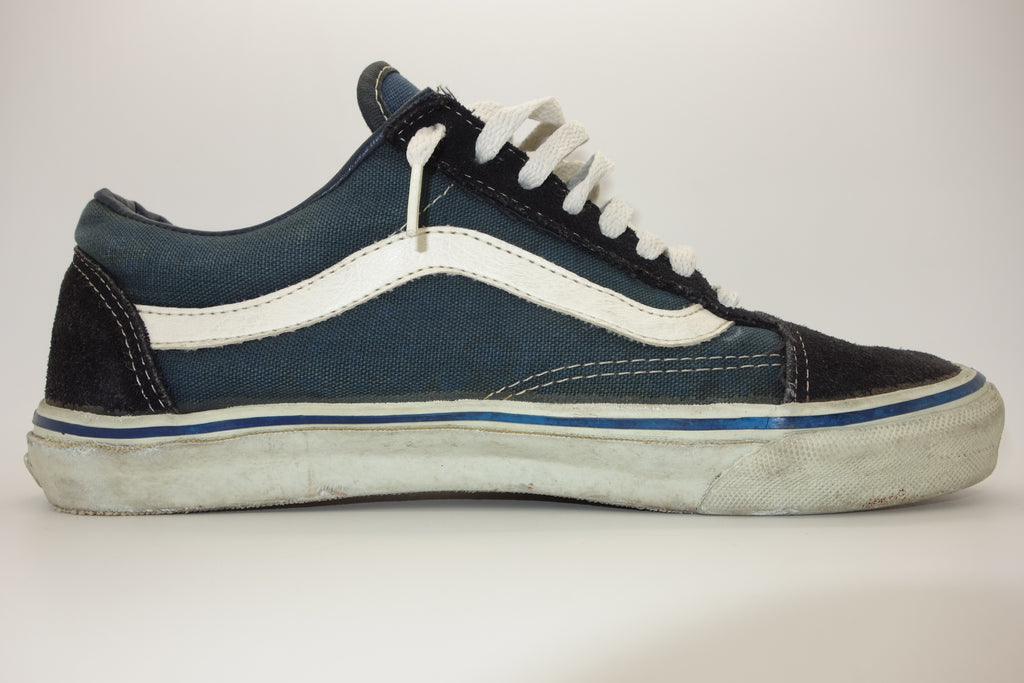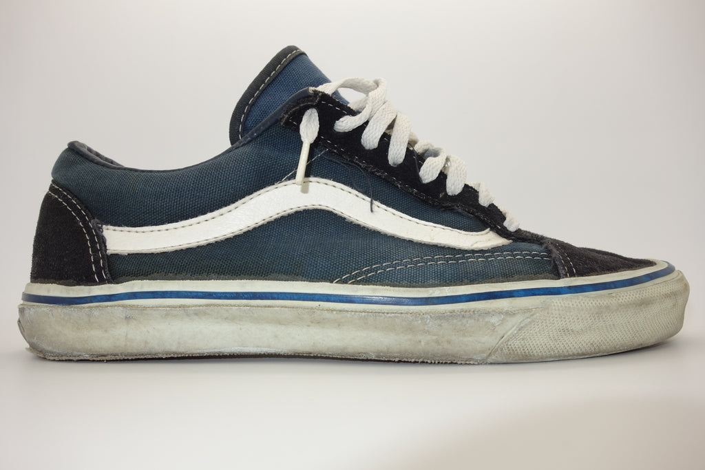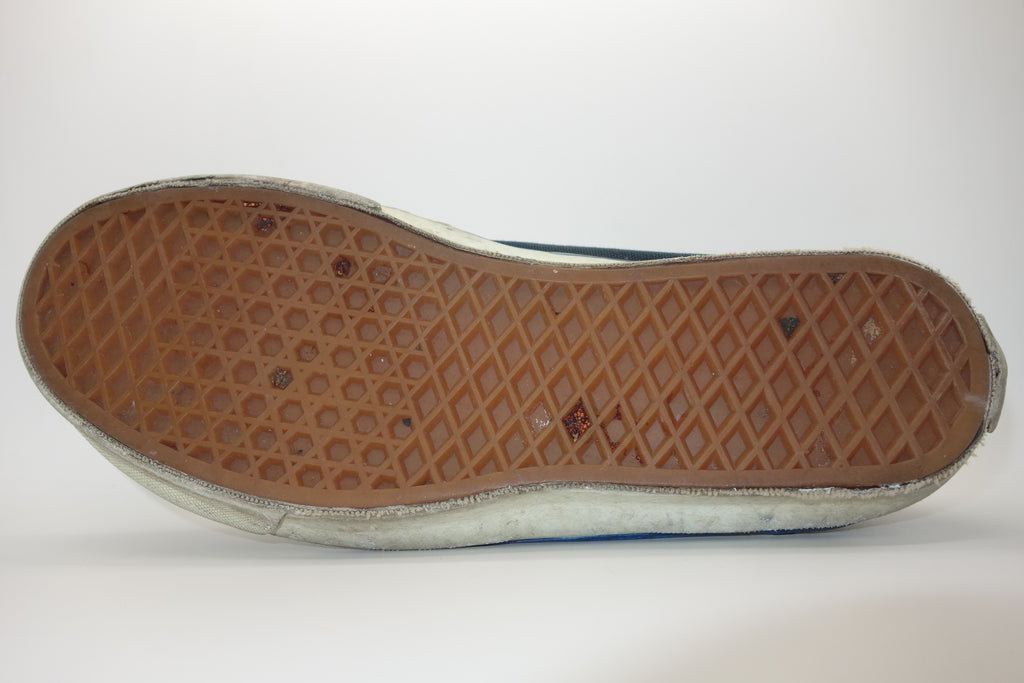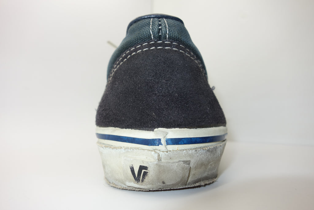 excellent used condition.... however the rubber first foxing (stripe area) has cured/solidified & will crack & chip away. the bumper, friction & waffle are unaffected however from experience these will crack immediately upon bends & leave a trail of rubber. they will look unsightly but then hold up to normal wear. the foam fiber-fill in the padded toungue has perished resulting in a lumpy filling, which may leave dry residue inside shoes & on socks. wear at own risk!