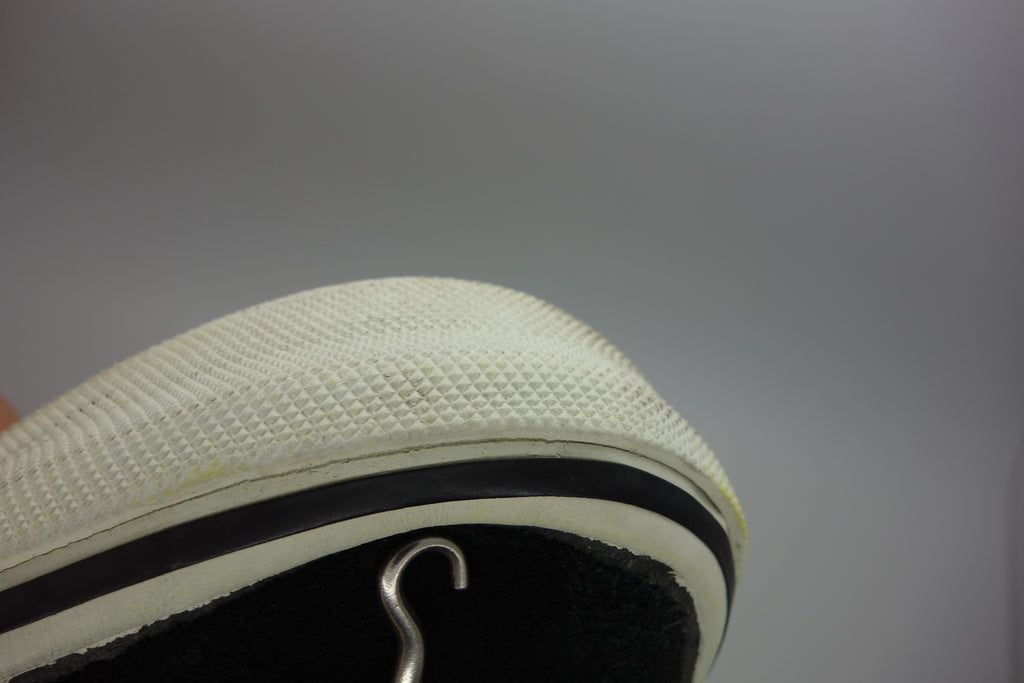 excellent used condition. all rubber remains soft except for a small area on the lateral right shoe which will crack. some chipping is already present however its not specifically on the bend area & these will otherwise hold up to normal wear, with only minor chipping on lateral right.