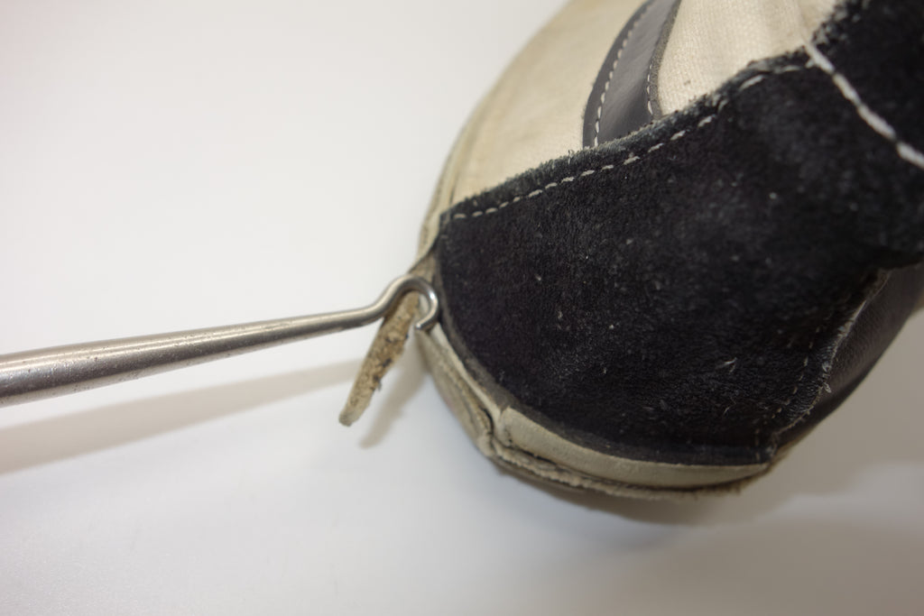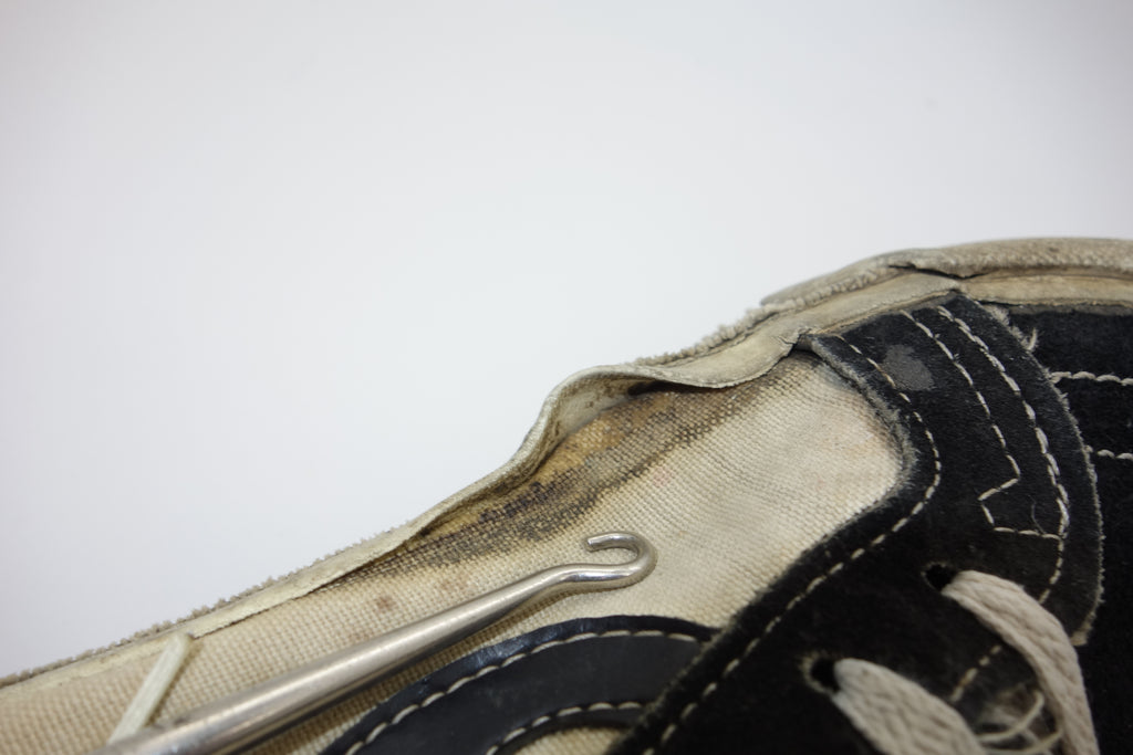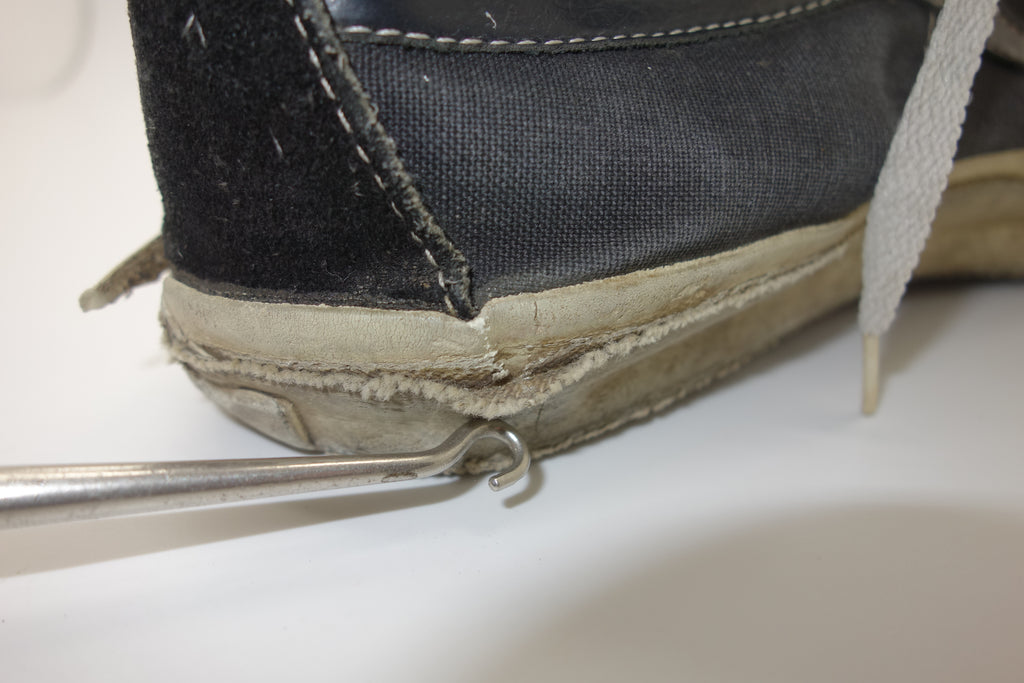 very good used condition. all rubber remains soft & flexible despite decent separation from uppers at toe creases & seams. some stress cracking from crush injury. size not visible but confident of US10.5