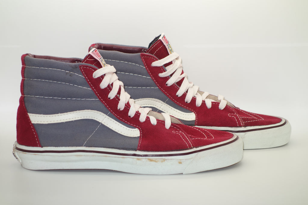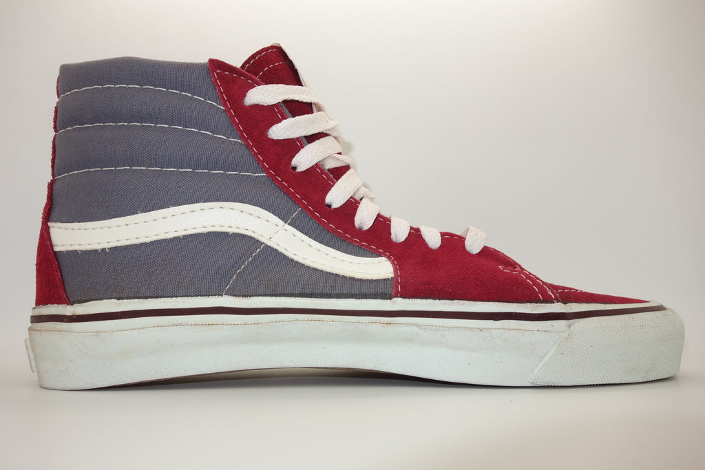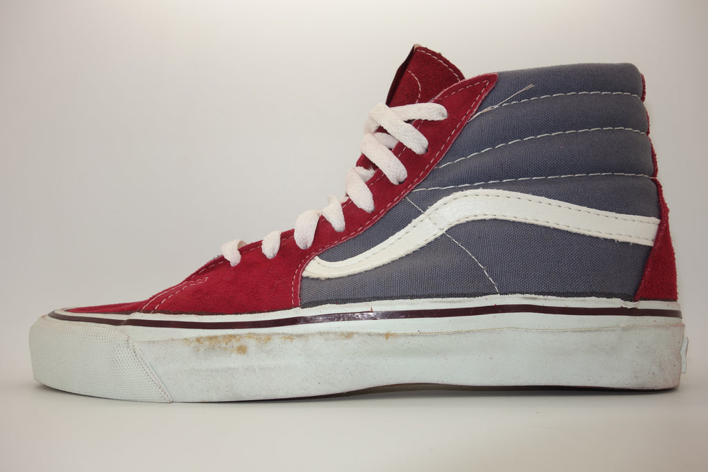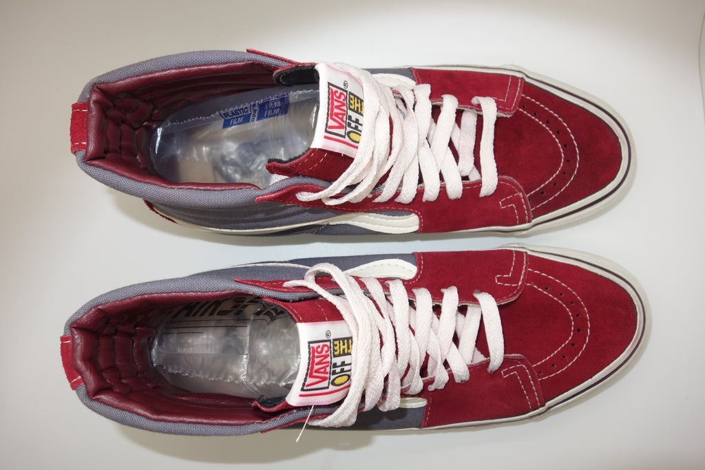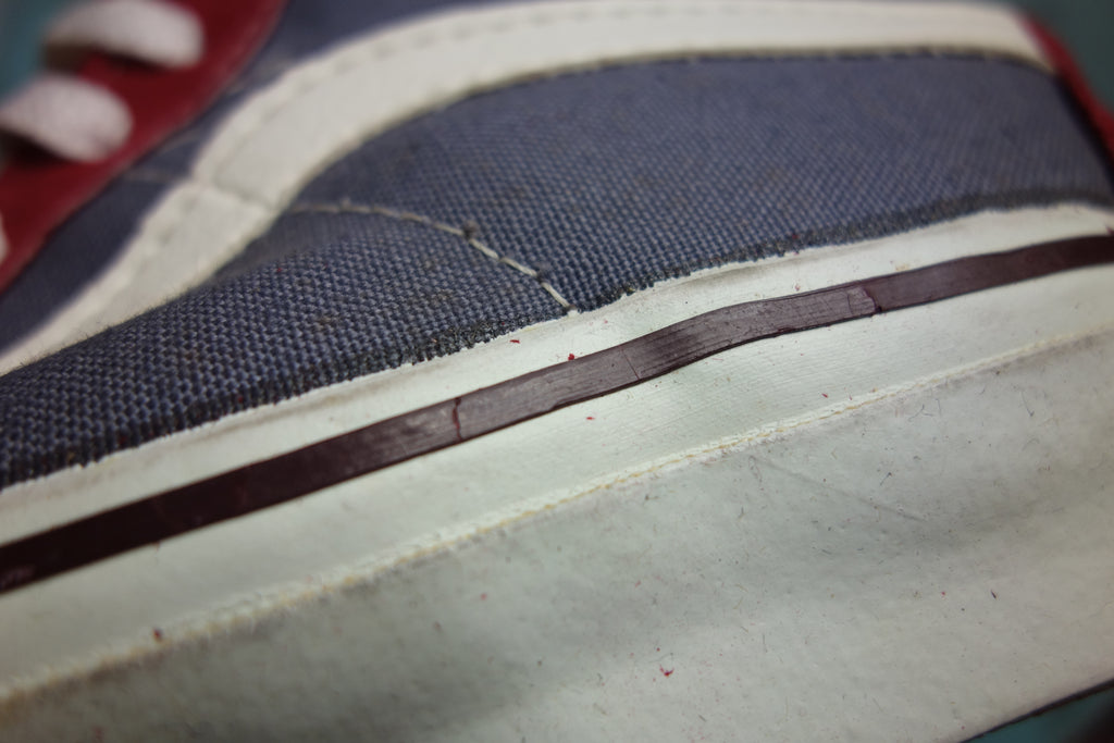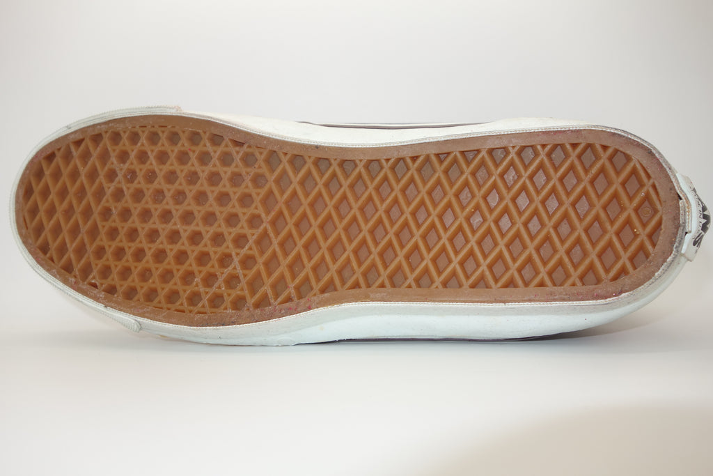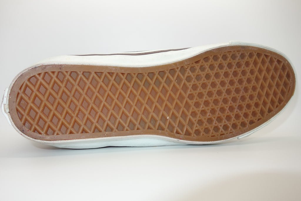 unworn.... however the entire red foxing stripe has cured/solidified & is brittle! hairline cracks already show HOWEVER THIS HAS NOT spread throughout parts of the white rubber first foxing. ONLY THE FOXING STRIPE HAS HARDENED. the first foxing, friction, sidewall, bumper & waffle itself. hairline cracks will continue and only chunks of the foxing stripe will be lost with minimal surface erosion into the white rubber underneath. thereafter they will hold up to normal wear. some colour bleed from suede onto laces. some cardboard from the box has adhered to the sidewall however will wipe away with damp cloth. wear at own risk!
