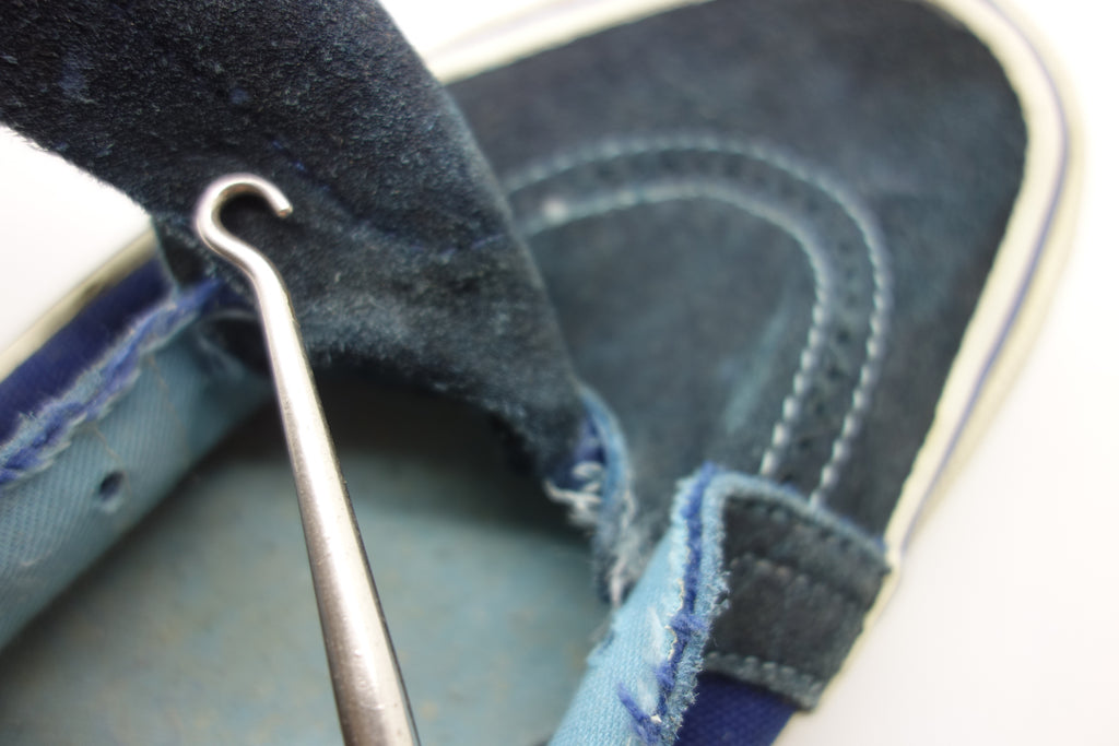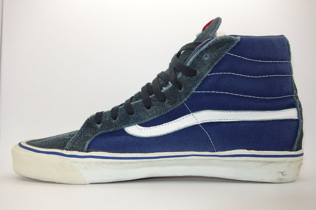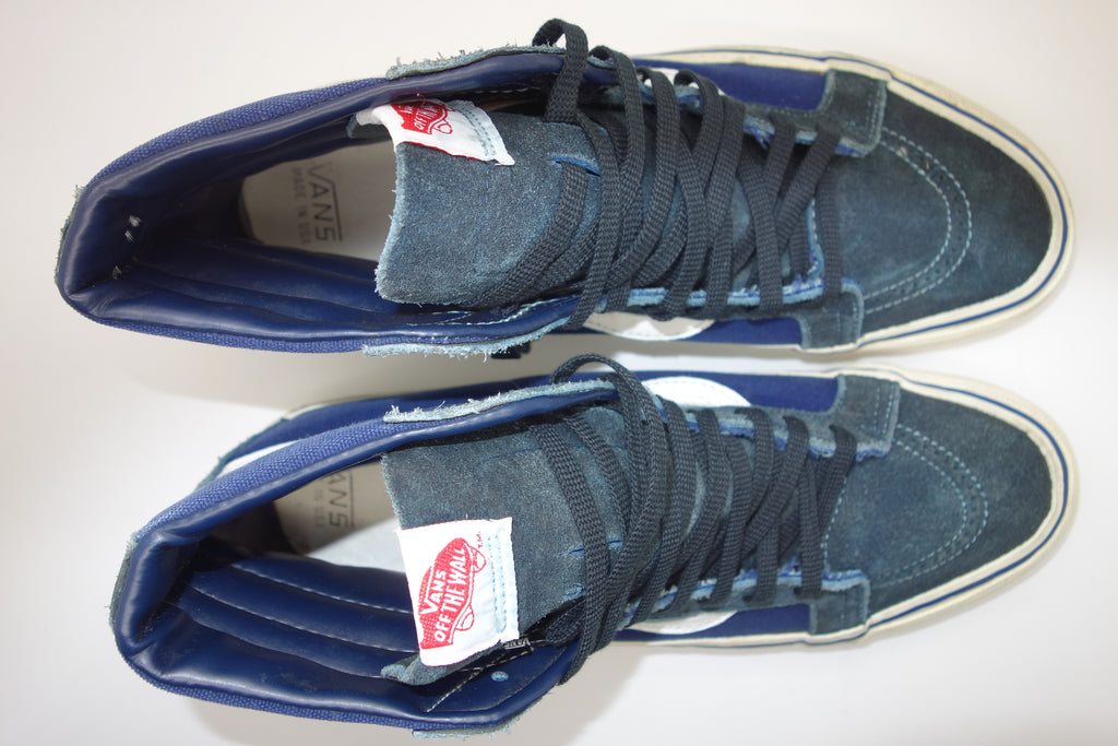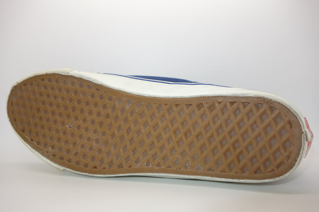 near flawless! all rubber remains soft & flexible. 1 area of stress cracking only at the toe from crush injury. laces are not original & the interior is blue! there are early examples of blue insoles however the inner lining is also blue. this leads me to believe the uppers were dyed however not when the shoes were intact because the leather jazz for example does not show any blue. the suede has stiffened slightly but still butter! the 2-piece tongue stitch has weakened however will not effect wear. both shoes list US12 however fit ever so slightly bigger, towards but not quite at the elusive US12.5.