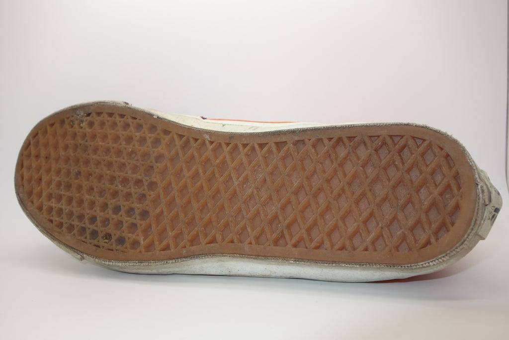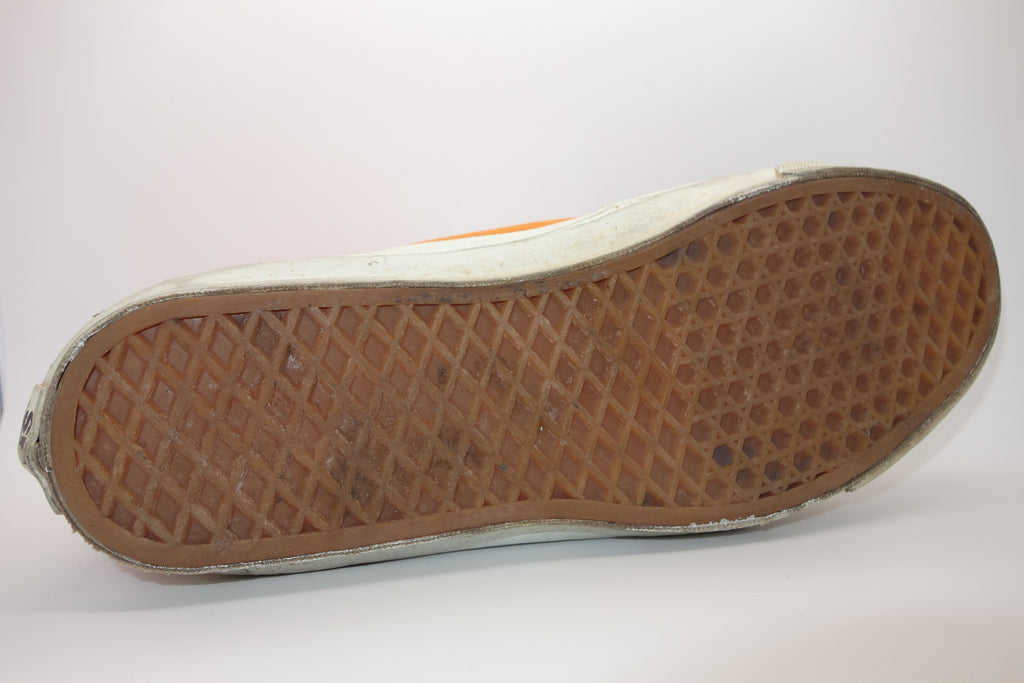 excellent used condition.... HOWEVER THESE ARE DEFECTIVE! photos reveal nothing however the first foxing is brittle around the whole shoe but especially adjacent to the suede & will crack & flake away. the friction itself & waffle are unaffected. these will hold up to normal wear however with loss of rubber chunks & unsightly guages into the foxing stripe area. wear at own risk!