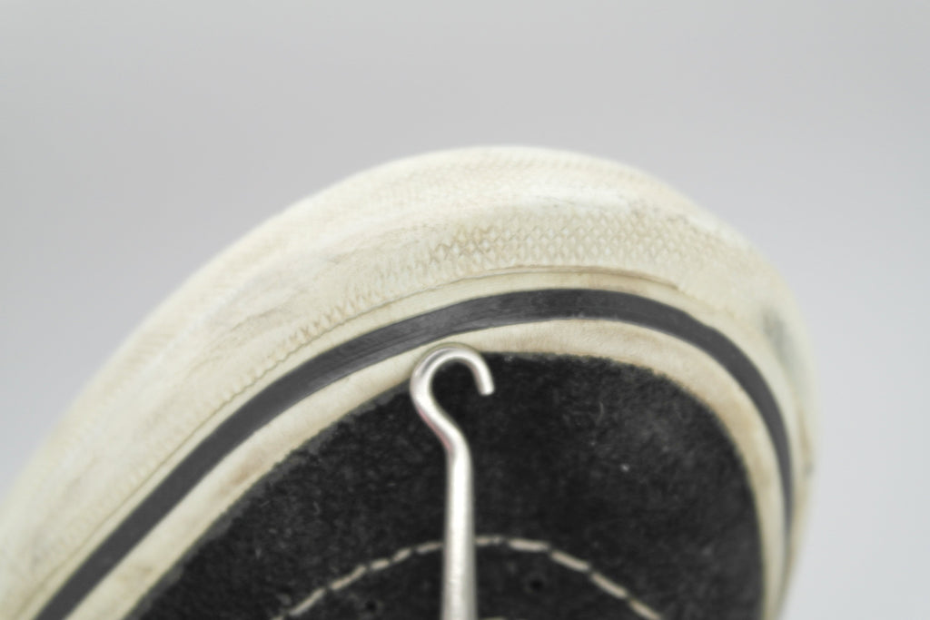 excellent used condition. barely worn since last made available. rubber is soft & flexible with minimal separation with uppers at seams. minor micro-cracking at toes from crush injury. the waffle is dry in a small area near the instep arch where it looks like the glue under the friction has oxidised slightly. there is minor separation to the friction however from experience should not effect wear. some wear to inner lining through to suede at toes. laces possibly not original
