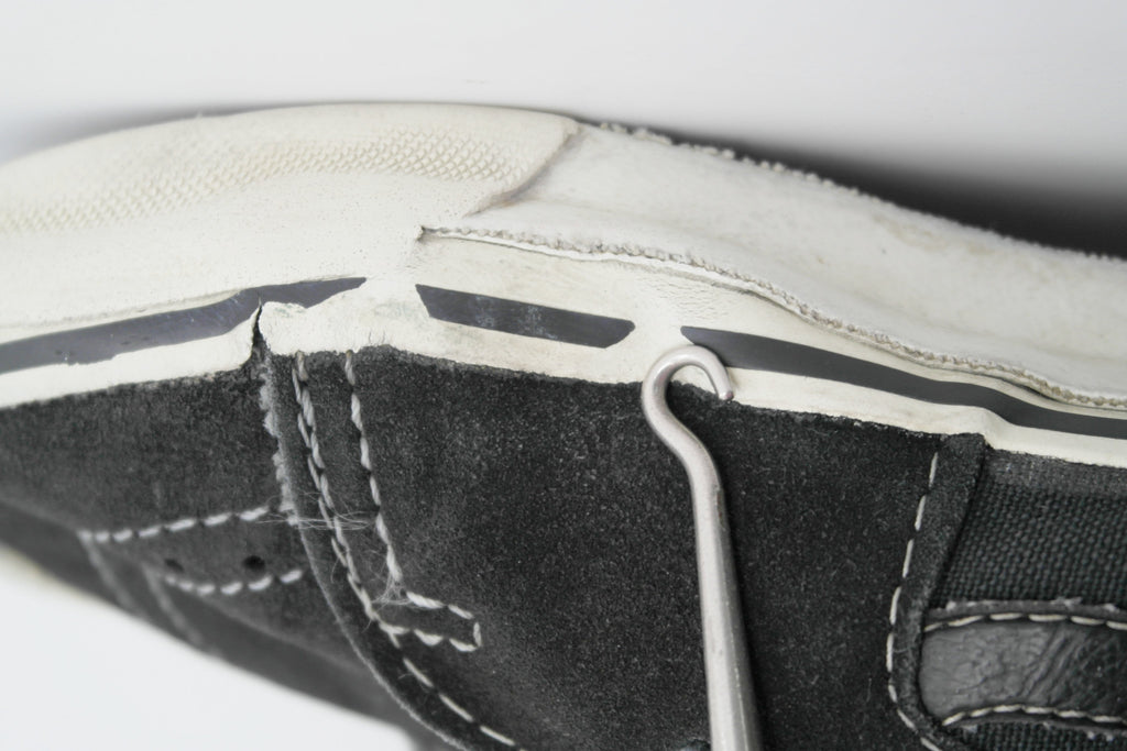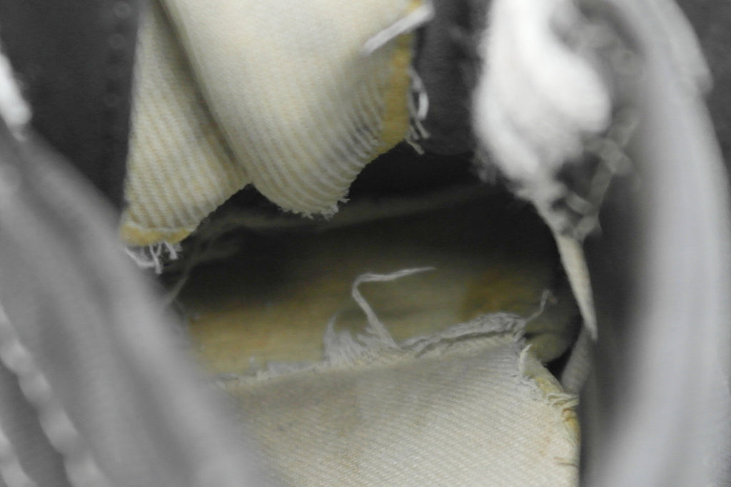 very good used condition. possible water-logging may have lead to distended left toe & misshapen form. minimal separation between rubber & uppers at toe crease & seams but rubber remains soft & flexi. the insole shows wear to the top lining & foam breakdown at the big toe & balls of feet. may require thin sole on top. laces not original. size is not visible however they appear to be US5.5 if not US6. check measures!