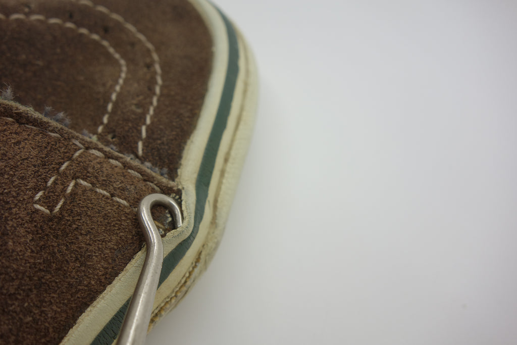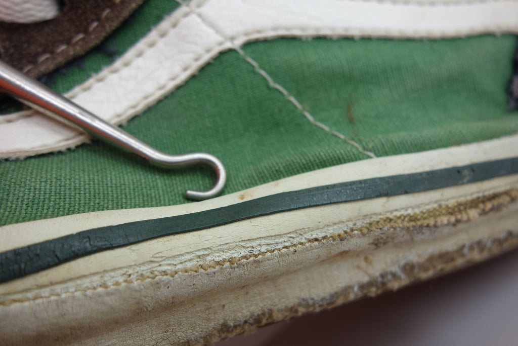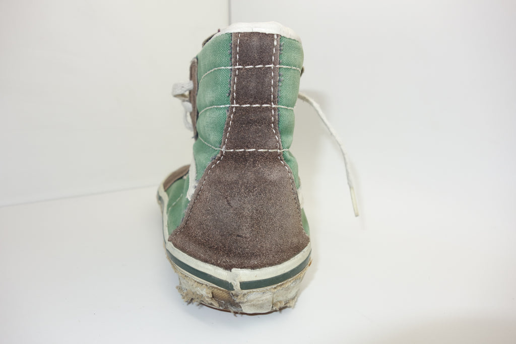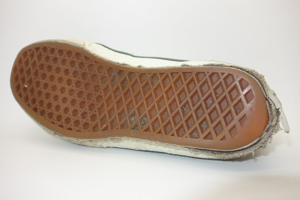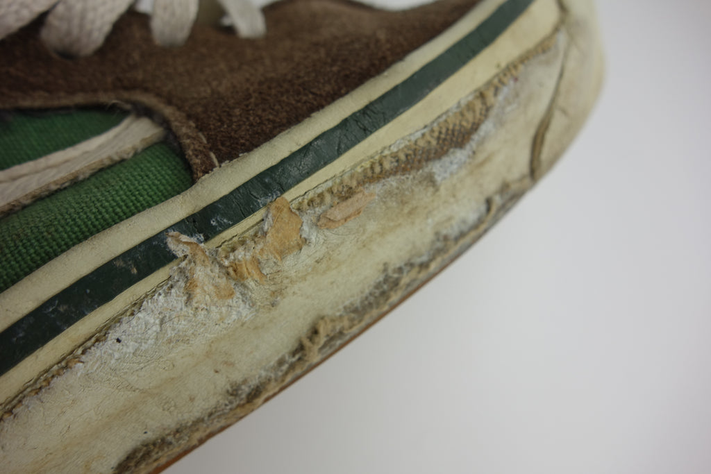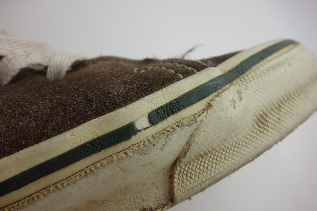 decent used condition. decent decent wear all rubber remains soft & flexible. the foxing stripe shows wrinkling & minor erosion however still soft. some tacky wet rot to the sidewall will dry with powder or dust. some wear to inner lining at big toes through to suede. 6 is barely visible inside so either US6 or US6.5.