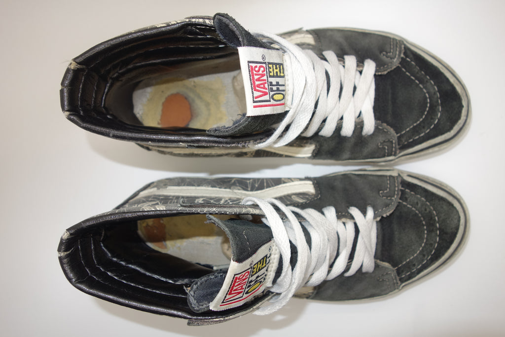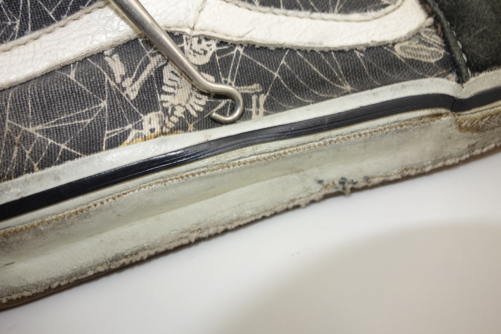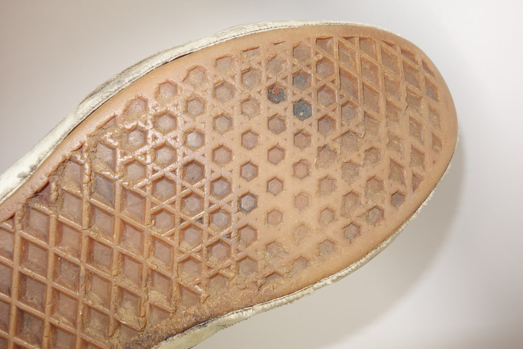 good used condition. all rubber remains soft & flexible, albeit a little dry at the toes. minor separation from uppers at seams & widespread micro stress cracking wont effect wear. the waffles show some erosion from pedals however remains soft. decent erosion of insole at heels & right big toe. no size visible however confident of US7.5 if not US7.