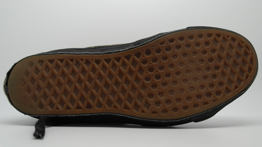 good used condition with general overall wear. several minor cases of separation between uppers & 1st foxing. there is surface wear to the footbed & leather heel inserts on both shoes. there is wear to the hessian backing through to the suede at both toes. some splitting to the top vinyl collar.