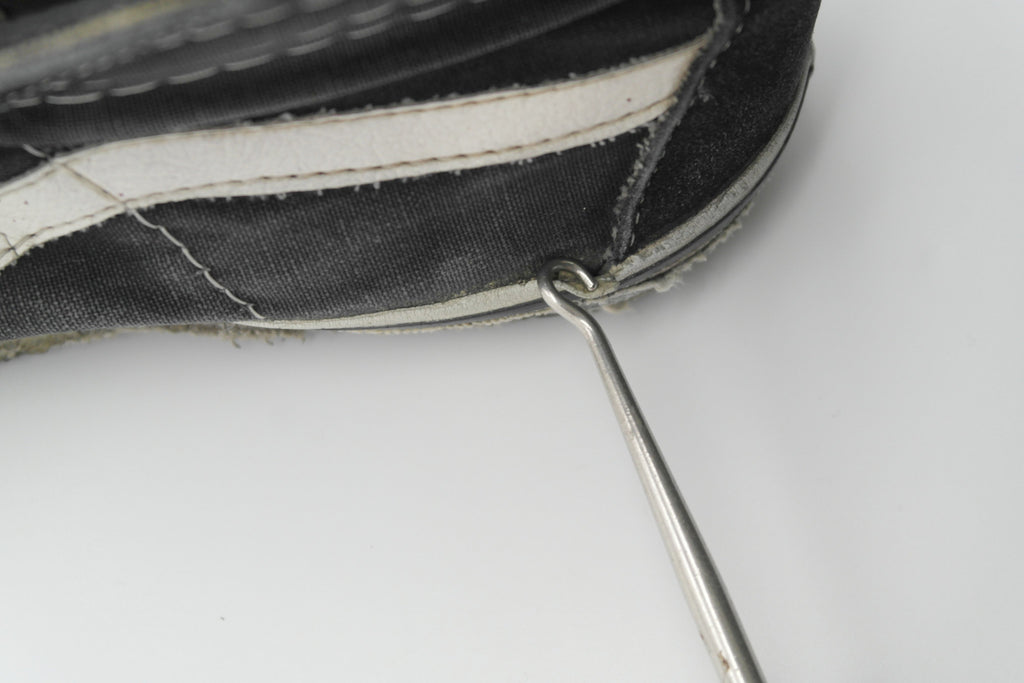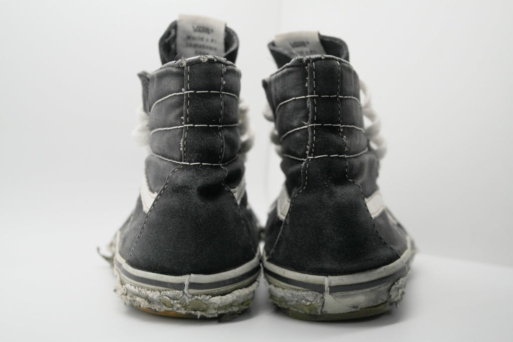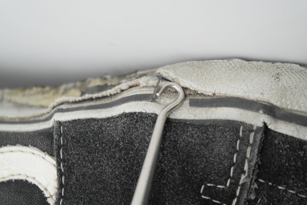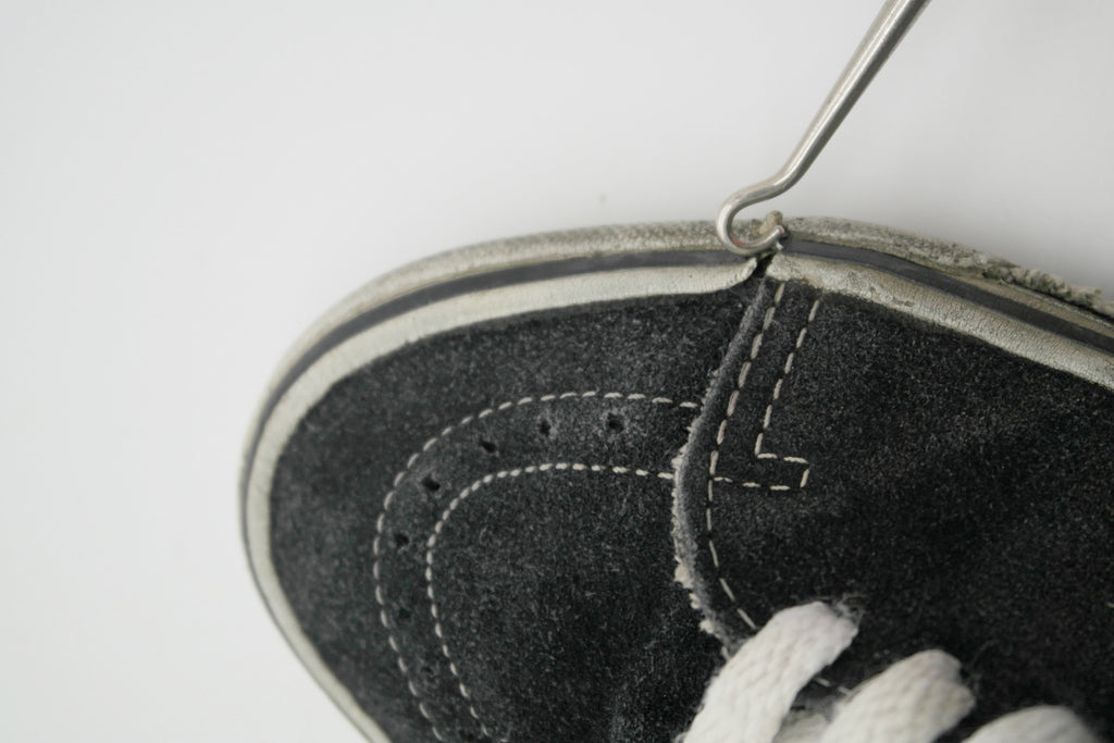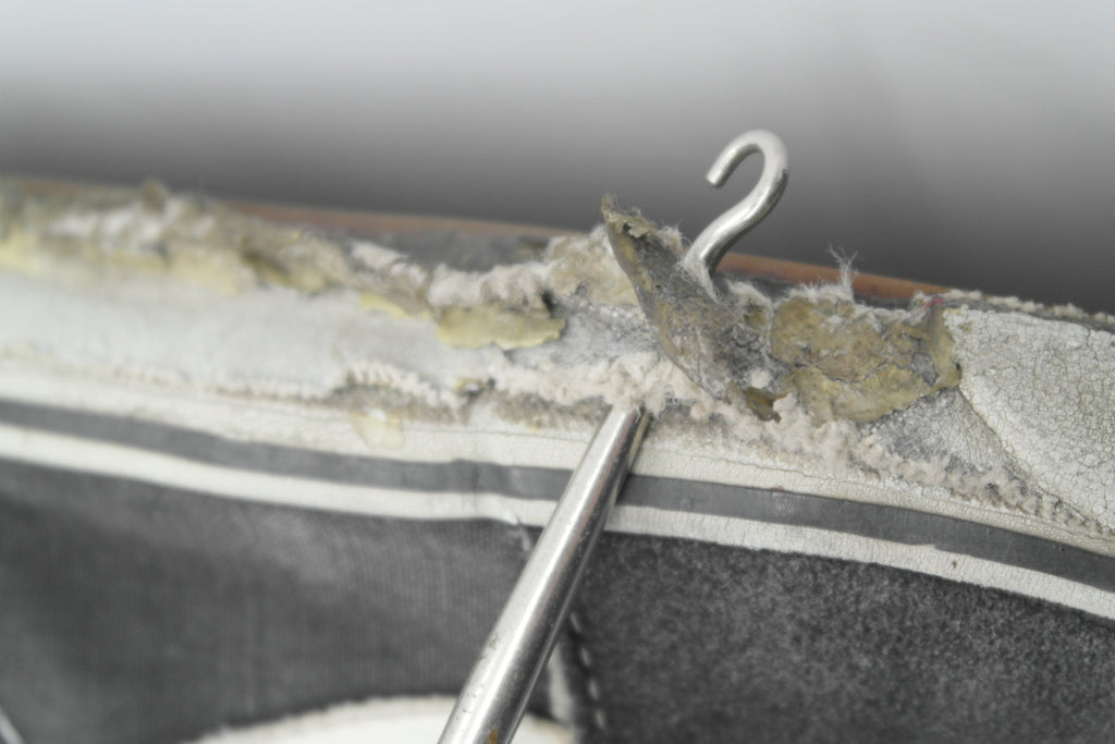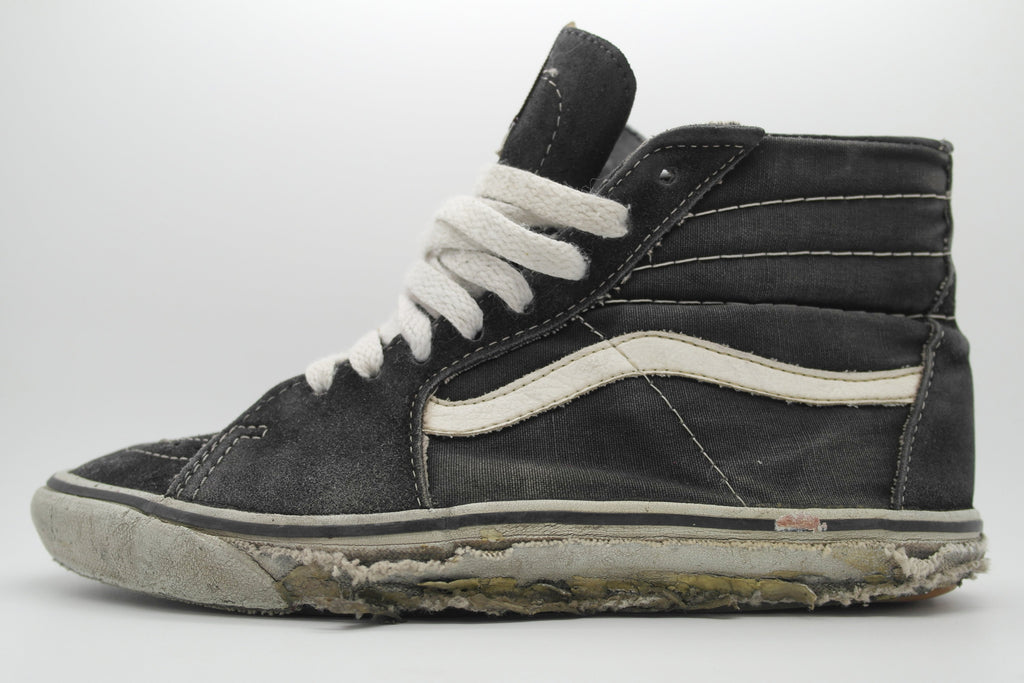 rubber remains soft & flexible however shows widespread mirco-cracking & curling of the friction. the rubber is dry however will hold up to normal wear & not breakdown. minimal separation between rubber & uppers at seams & toe creases. the insole shows a few erosion cavities of similar size that can be seen at the heel. some wear to canvas backing through to suede at toes. size no longer visible. they were bought as US8.5 however fit like US9 or a blown-out 8.5. check measures