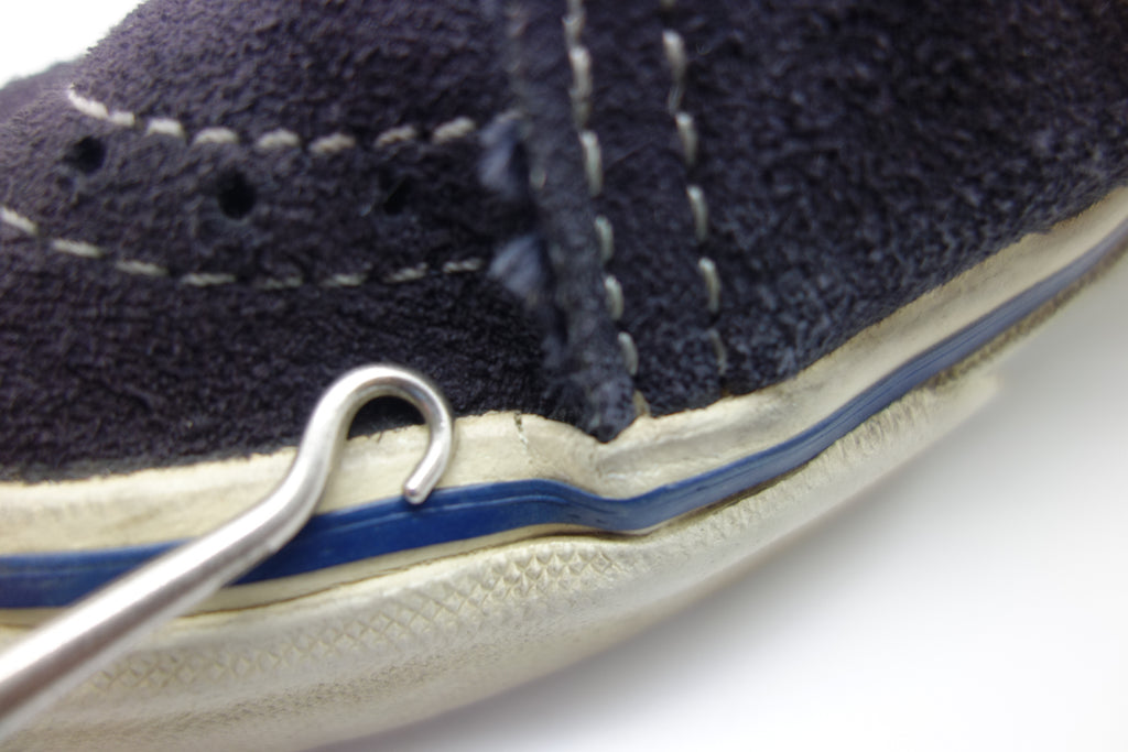 very good used condition. the rubber midsole however does show firmness in places, mostly towards the toe & heels. these areas are brittle & will crack & flake away over time. the crucial areas around the toe crease bend are not brittle as such but will show some breakdown. it is primarily the first foxing (stripe area) only. the friction & waffle are unaffected. they will hold up to normal wear however with unsightly rubber loss upon bends. otherwise intermittent micro-cracking, minimal separation with uppers at seams. size not visible but confident of US8.5. some wear to internal lining of suede at big toes. wear at own risk!