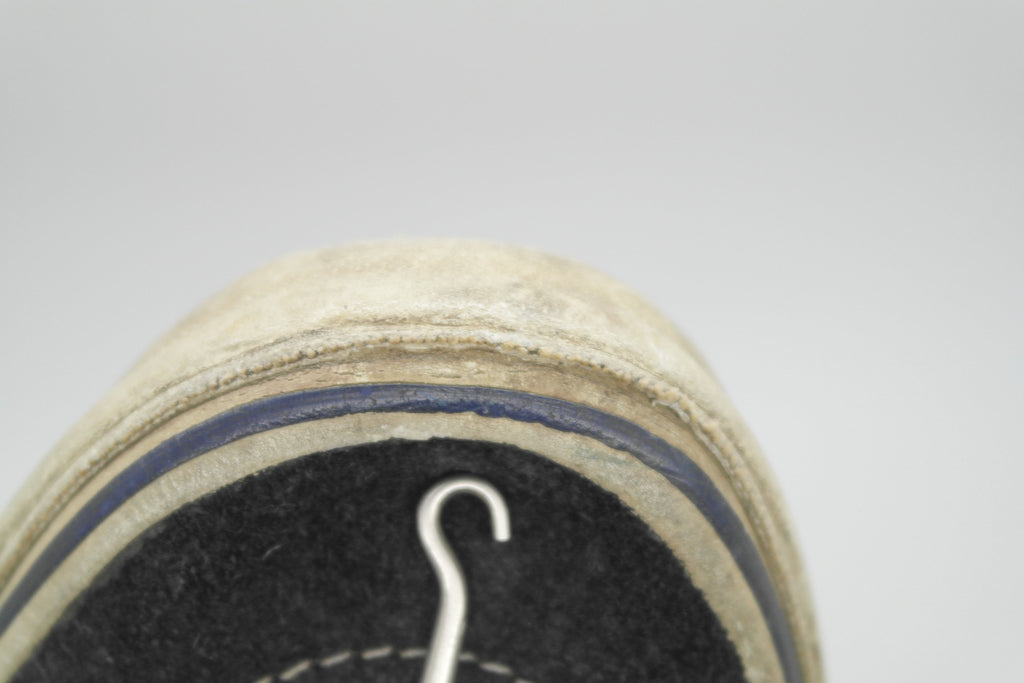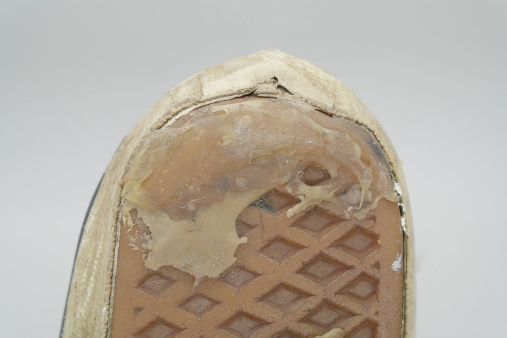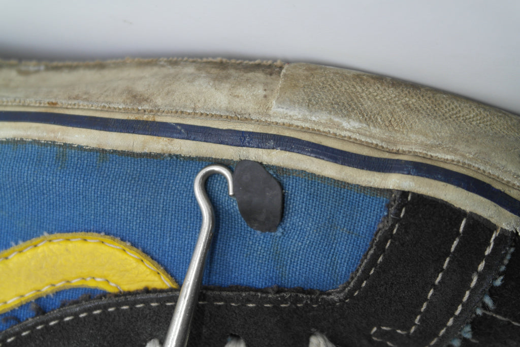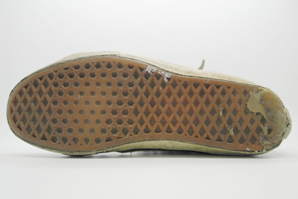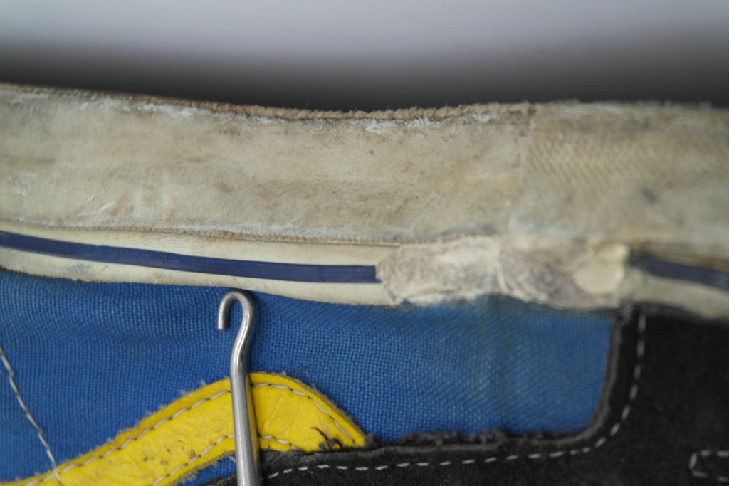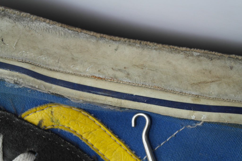 good used condition. rubber remains soft & flexible albeit dry. widespread micro-cracking from crush injury & several shoe-goo repairs of separation between uppers & rubber mostly at toe creases..... which appears like they will hold. shoo-goo repair at heel on waffle. very minor erosion of insole at big toes. some wear to lining at arch & through to the suede at toes. some splits to vinyl collar. US9 is barely visible but confident of size, however these throwback models fit slightly big & wider like modern spec.