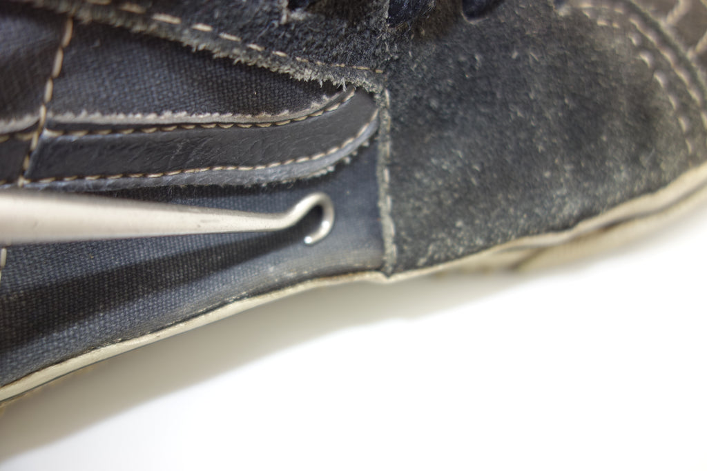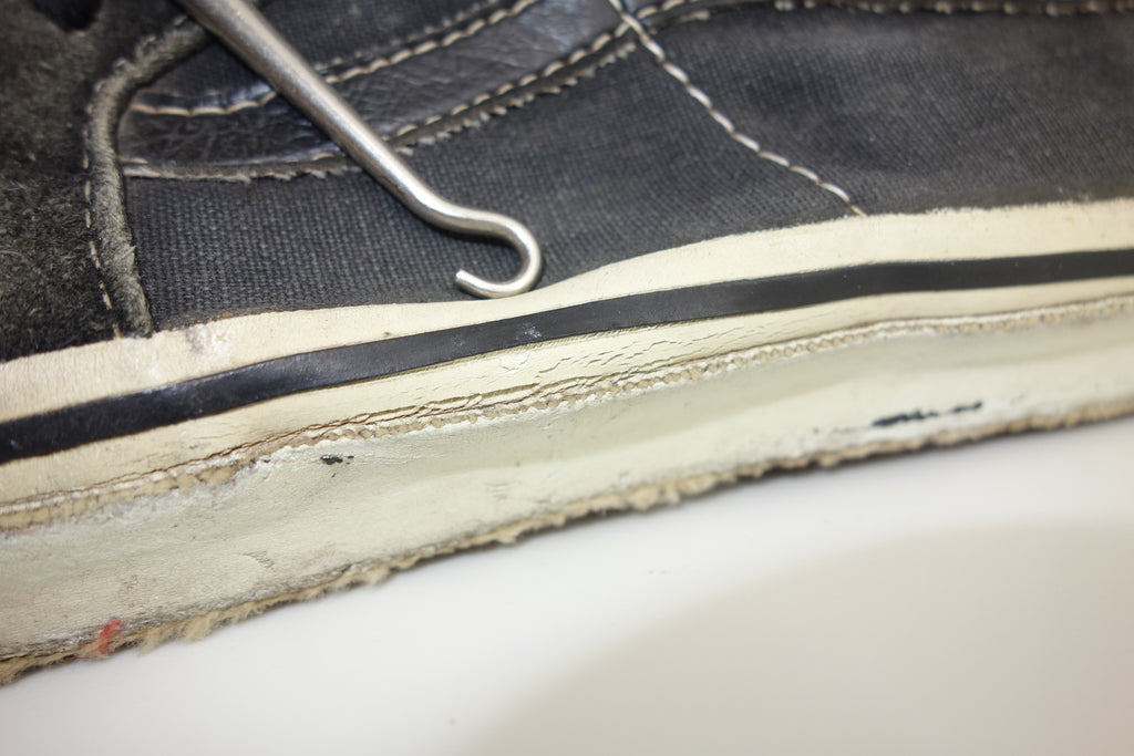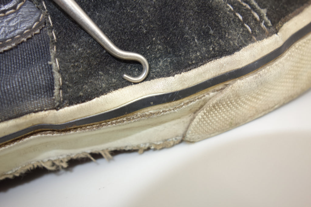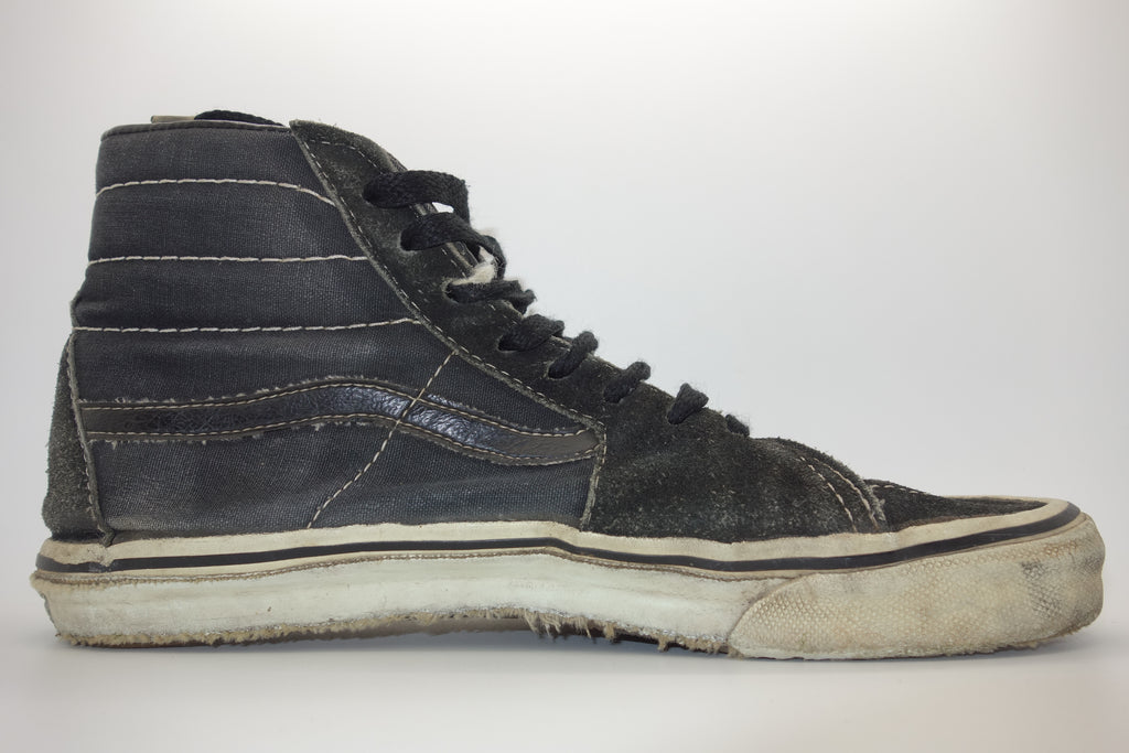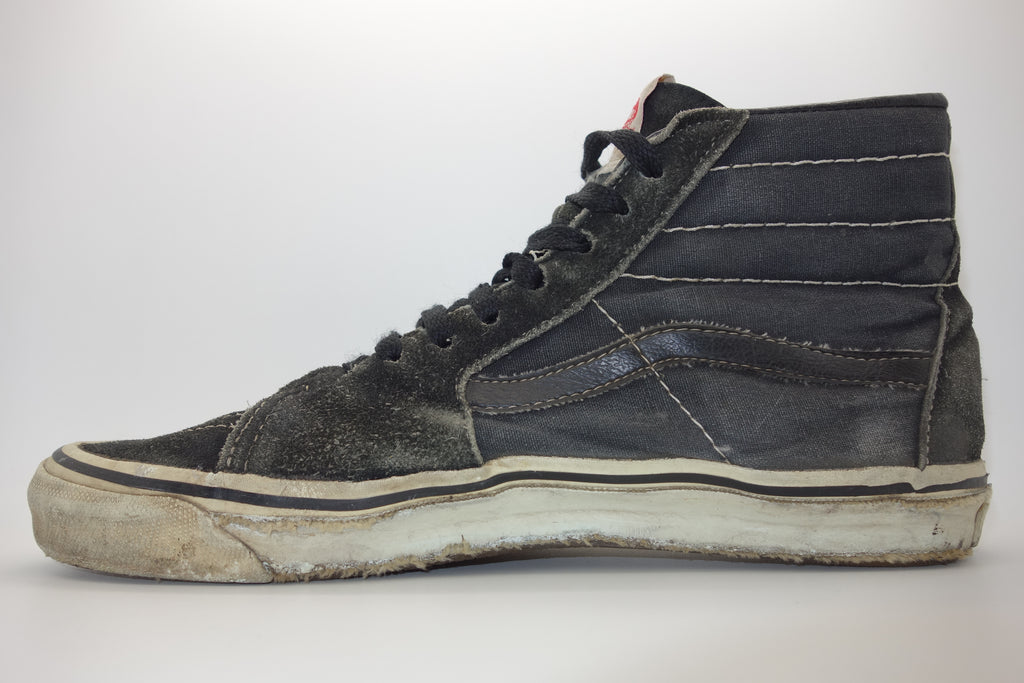 good used condition. all rubber remains soft & flexible. minimal separation from uppers mainly at seams. widespread stress cracking from crush injury. saw good wear however structurally sound. pedal erosion on waffle from bmx. size not visible but bought as US9 & measures accordingly if not towards US9.5