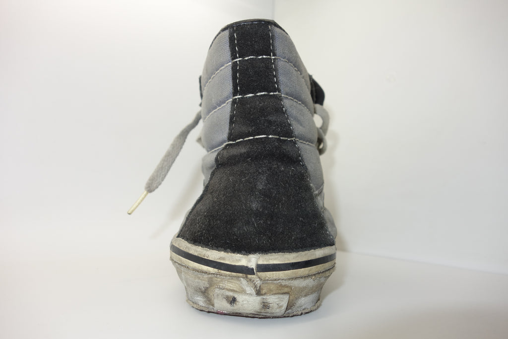 good used condition. some rubber curing/hardening to the toes with 1 hairline crack visible. the rubber remains soft towards the crucial bend area however may still crack. minimal separation from uppers mainly at seams. some stress cracking from crush injury. saw good wear however structurally sound. minor wet rot to the friction sidewall, can be dried using white talcum powder. size not visible but bought as US9 & measures accordingly. wear at own risk