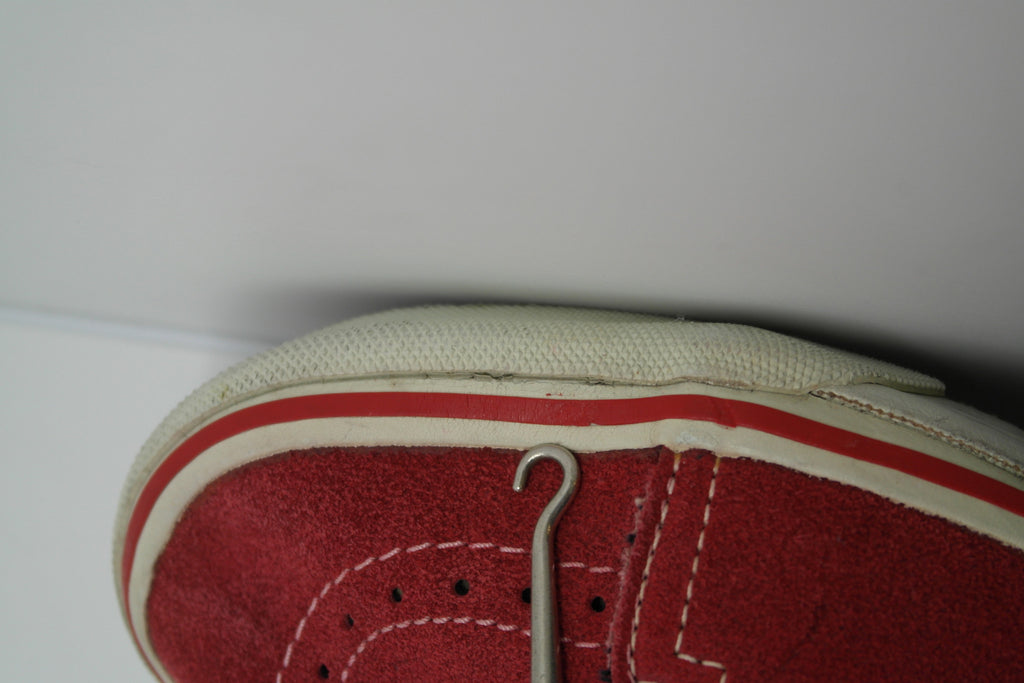 very good used condition. there is a very fine line of brittle rubber below the foxing stripe & above the midsole which shows stress cracking at toe crease areas. from experience this will hold up to normal wear. laces are not original. its possible they fit slightly small for a 9 but not quite at 8.5